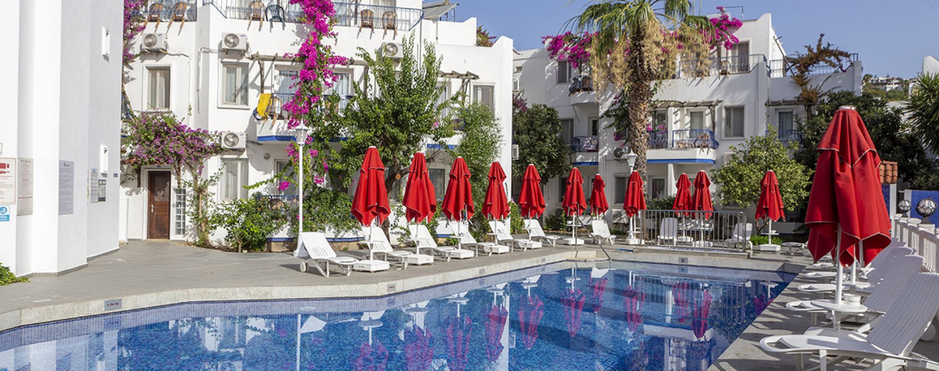 Намира се на 37 км от летище Бодрум, на 3 км от центъра на Бодрум, на 250 м от центъра на Гюмбет, на 50 м от брега на морето. Построен 1988 г.