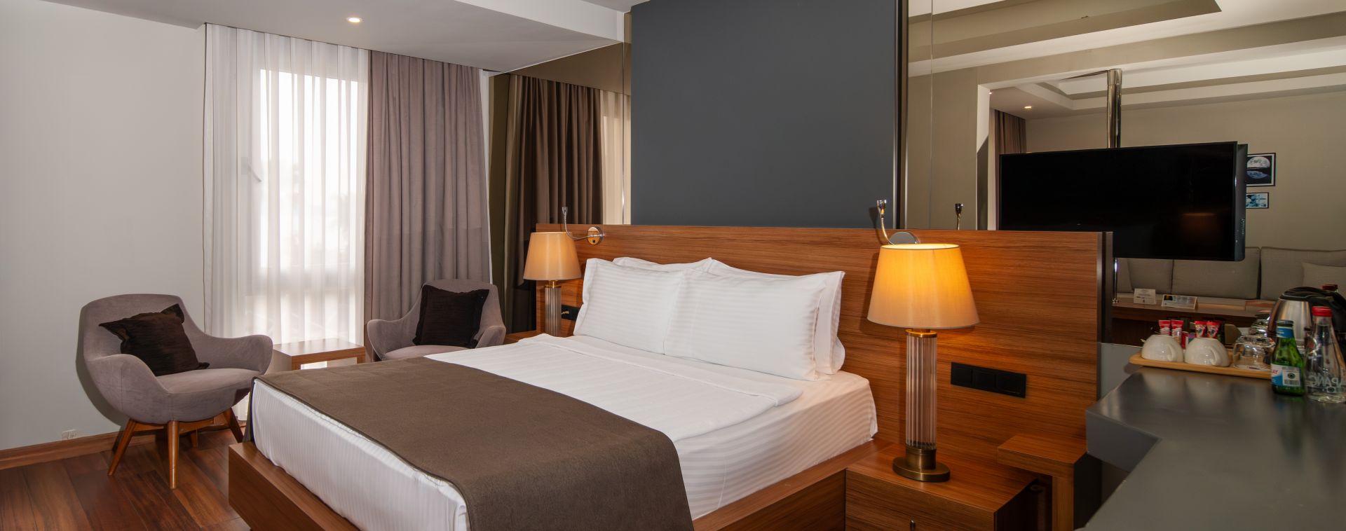 Всички стаи са оборудвани с климатик, телевизор, телефон, баня с душ, сешоар, минибар (безплатен), сейф (безплатен).