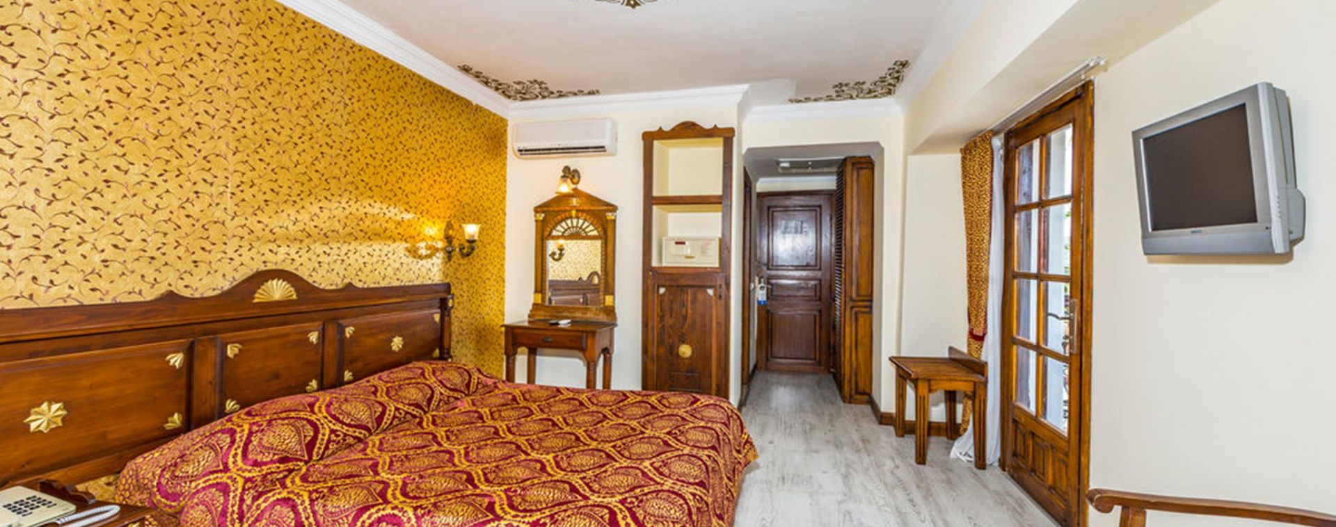 Всички стаи са оборудвани с климатик, телевизор, телефон, баня с душ, мини бар (празен), сейф (платен), френски балкон (гледка градина).
