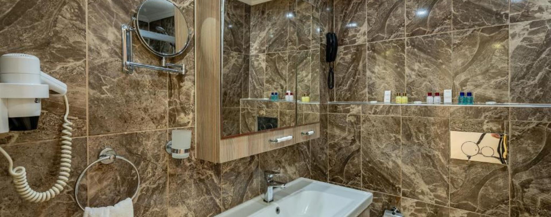 Всички стаи са оборудвани с климатик, телевизор, телефон, баня с душ, сешоар, минибар (зарежда се само с вода), сейф (платен).