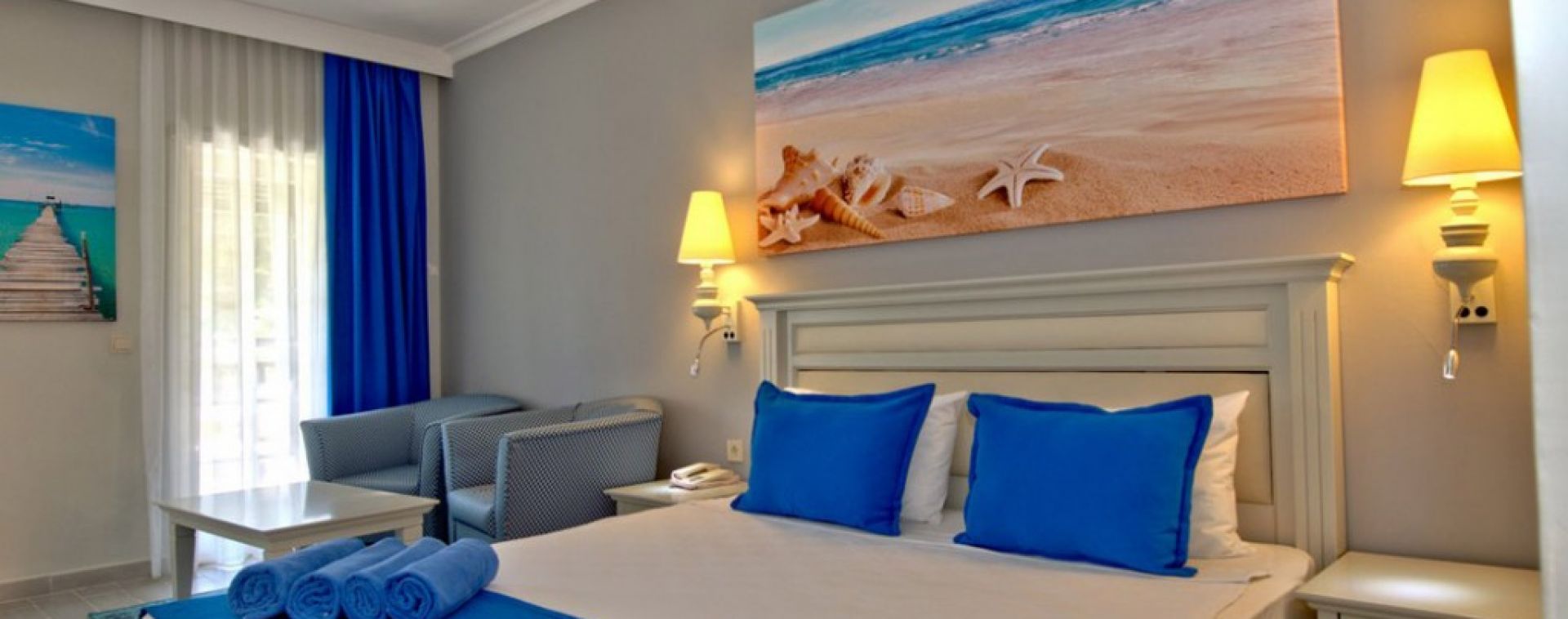 Хотелът разполага с общо 377 стаи, разположени в 3-етажни блока. Стаи Standard room garden view (спалня със зона за сядане, баня, с изглед градина - 24 м²), Standard large room (спалня с двуетажно легло, баня, с изглед градина - 24 м²), Family Room (2 спални, 1 баня, с изглед градина - 40 м²), Suite room