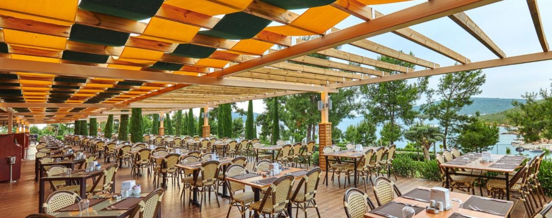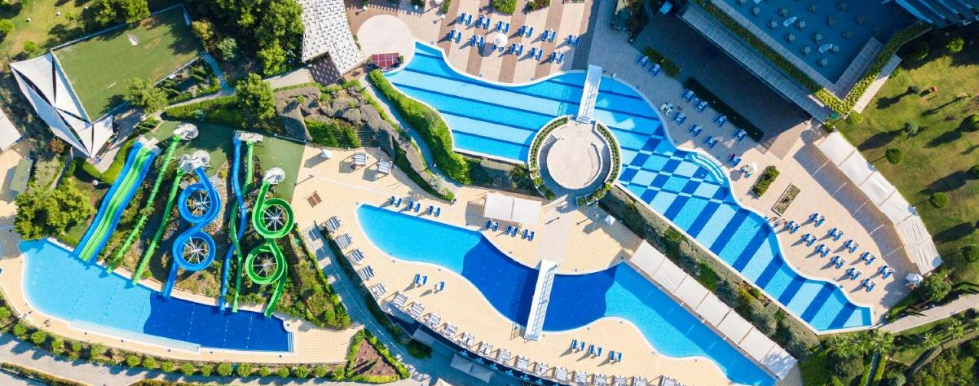 Основен ресторант PINA с диетичен, вегетариански и детски кът; 5 а-ла-карт ресторанта (турски MARDIN, италиански PULCINELLA, тепаняки SAKURA - с предварителна резервация, 4 снек ресторанта; 12 бара, сладкарница, 2 открити басейна, 1 закрит басейн, аква парк с 10 водни пързалки, амфитеатър, СПА център, дискотека, магазини, 9 конферентни зали, паркинг. На плажа има общо 16 кабани, които могат да се наемат срещу допълнително заплащане, с включен сервиз.