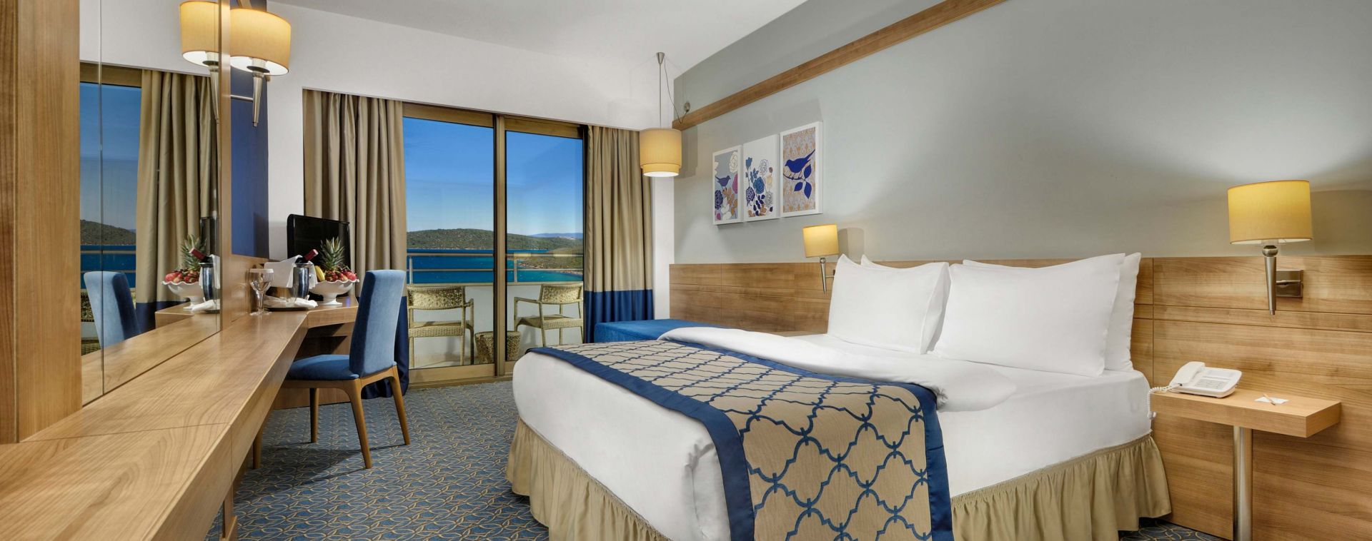 Всички стаи са оборудвани с централен климатик, LCD телевизор, телефон, мини бар (безплатен), сет за кафе и чай, сейф (безплатен), баня с душ, сешоар, балкон, Wi-Fi (безплатен), под с паркет. Почистване на стаите на стаите всеки ден, смяна на спалното бельо и кърпите - 3 пъти в седмицата. Стандартните стаи са с гледка градина или море, всички останали видове стаи са с гледка море. Вилите с частен басейн и Swim Up стаите имат включени допълнителни услуги и удобства (VIP концепция и достъп до VIP лаунж).
