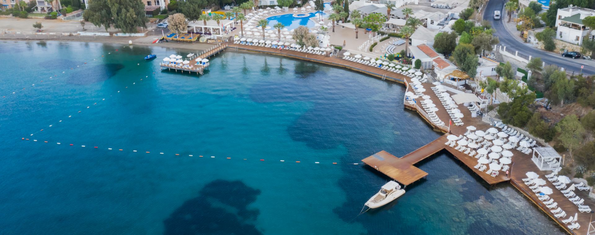 Намира се на 35 км от летище Бодрум, на 1 км от центъра на Бодрум, на брега на морето. Построен 1989 г., на обща площ от 32 000 м². Реновиран 2015 г.