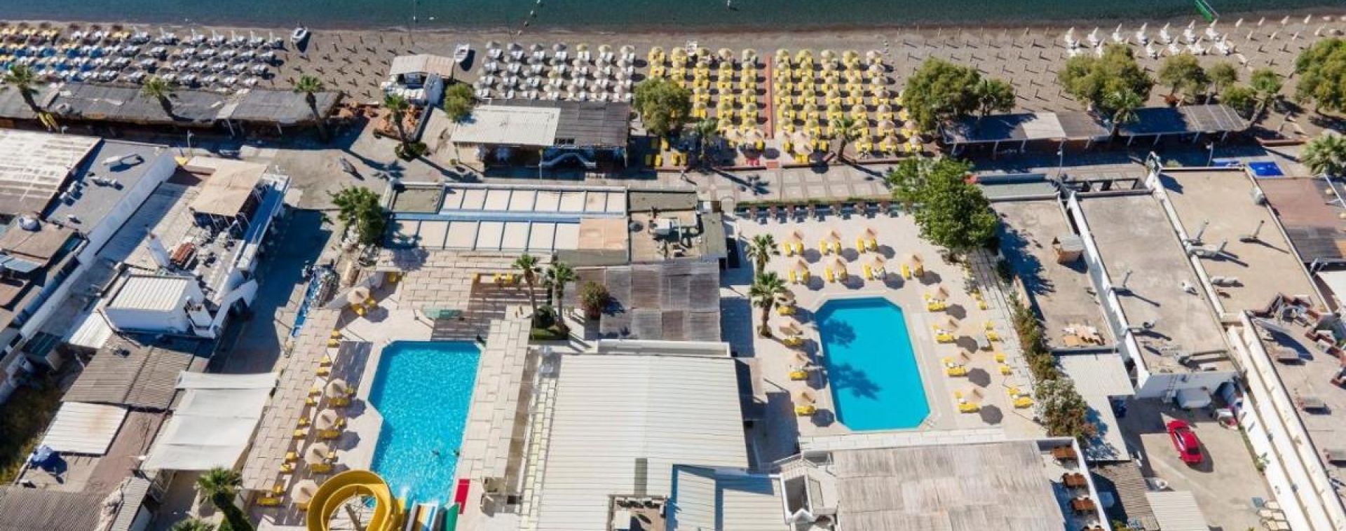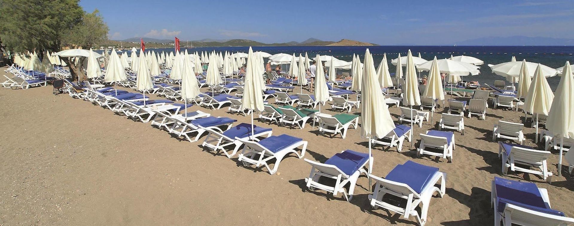 Собствен, пясъчно - чакълест. Чадъри, шезлонги на плажа и при басейна – безплатно. Плажни кърпи - срещу депозит.