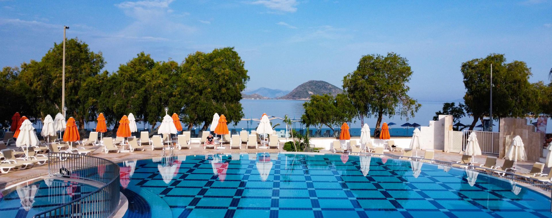 Намира се на 53 км от летище Бодрум, на 18 км от центъра на Бодрум, на центъра на Тургутрейс, на брега на морето. Построен 1990 г., на обща площ от 6.000 м². Реновиран 2025 г.