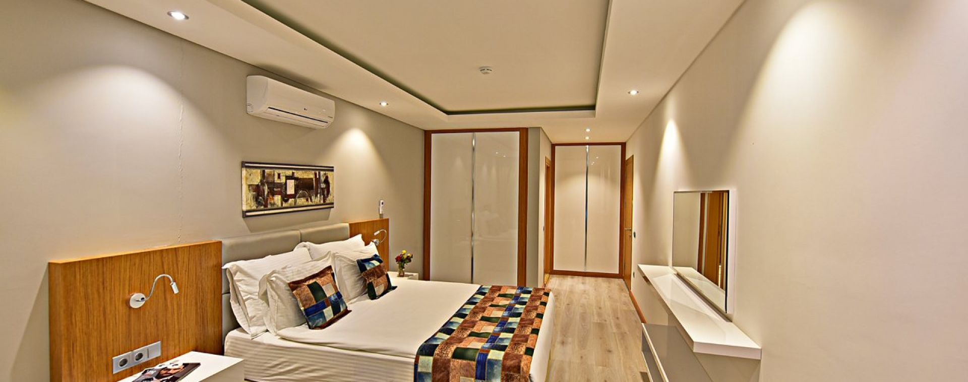 Хотелът разполага общо с 91 стаи от които: 21 Studios (40 м²), 37 One Bedroom Apartaments (86 м²), 28 Two Bedroom Apartaments (80-90 м²), 4 Three Bedroom Apartaments (112 м²). Всички стаи са оборудвани са с климатик, телевизор, телефон, сешоар, мини бар (вода при пристигане), сейф (безплатен), сет за кафе/чай, балкон/тераса. Почистване на стаите - всеки ден, смяна са бельото и кърпите - 2 пъти в седмицата.