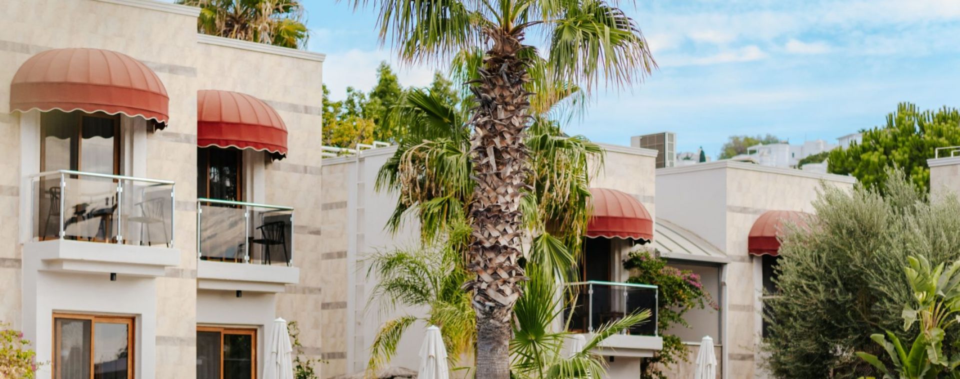 Намира се на 36 км от летище Бодрум, на 1 км от центъра на Бодрум, на 1 км от центъра на Гюмбет, на втора линия. Построен 2006 г., на обща площ от 4000 м².