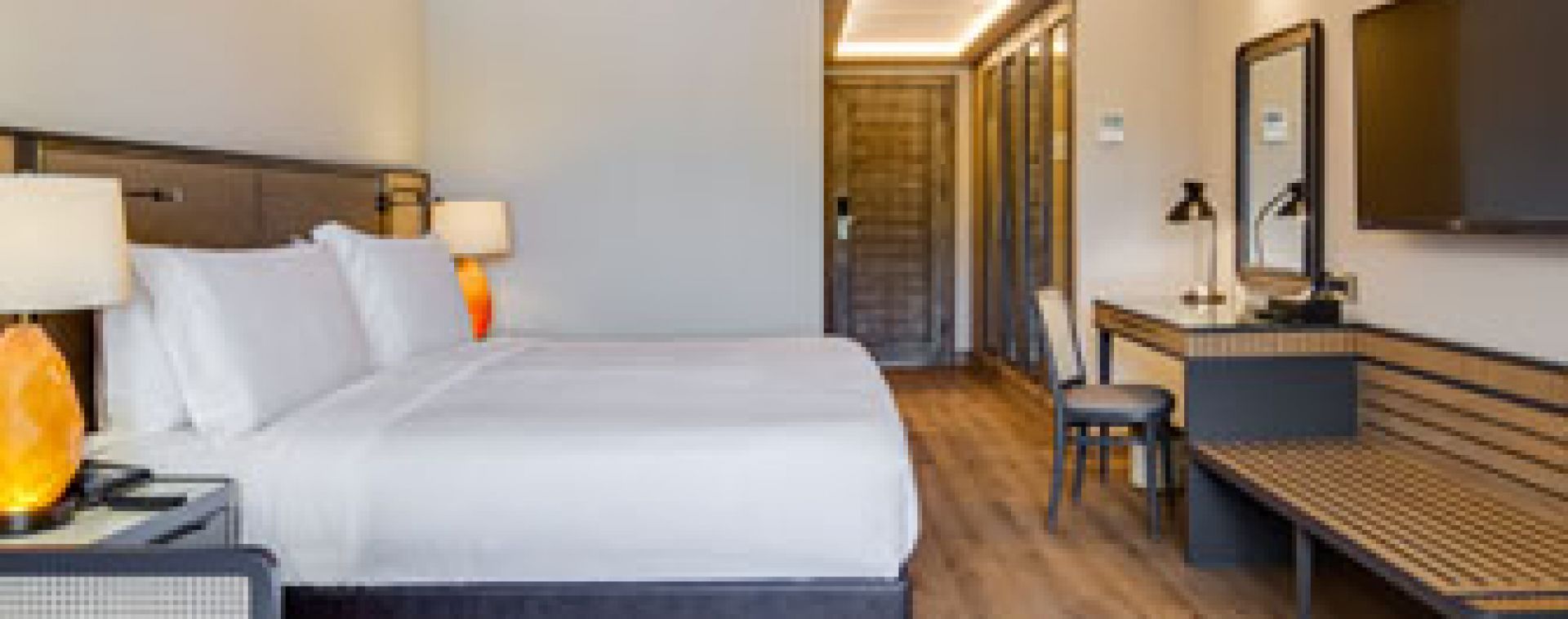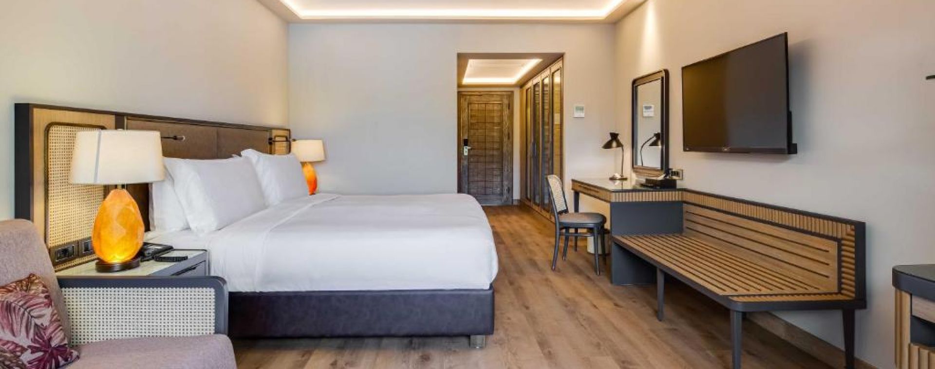 Стаи Standard Room (1 спалня, 1 баня - 33 м²), Superior Room (изглед градина, 1 спалня, 1 баня - 33 м²), Deluxe Garden View (изглед градина, 1 спалня, 1 баня - 35 м²), Deluxe Pool View (изглед басейн,1 спалня, 1 басейн - 35 м²), One Bedroom Suite Pool View (изглед басейн, спалня със зона за сядане, 1 баня - 55 м²), One Bedroom Suite Sea View (изглед море, спалня със зона за сядане, 1 баня - 55 м²).