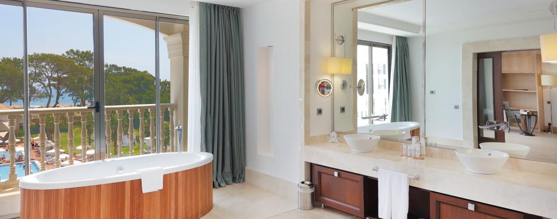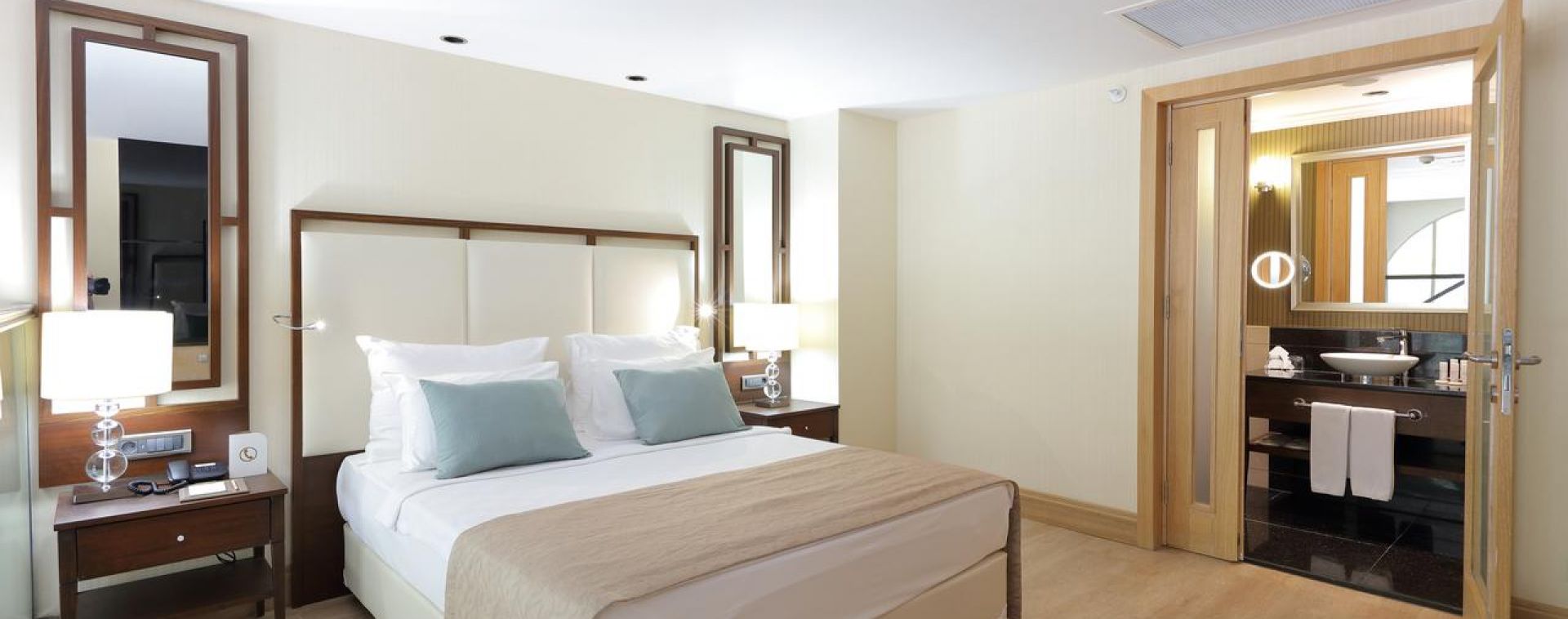 Хотелът разполага с общо 423 стаи, разположени в 5-етажна основна сградa Main building, от които 295 Deluxe Standard Rooms (изглед планина или страничен изглед море – 36 м2), 38 Deluxe Standard Large Rooms (изглед планина или страничен изглед море, 42-46 м2), 73 Duplex Family Room (на два етажа, 2 спални, 2 бани – 65 м2), 2 Duplex Family Executive (на два етажа, 2 спални, 2 бани – 79 м2), 6 Honeymoon Suite (спалн, кът за сядане, джакузи, 52-67 м2), 4 Honeymoon Suite Executive (спалня, кът за сядане, гардеробна, джакузи, изглед море – 79 м2), 1 Prestige Suite (на два етажа, 2 спални, кът за сядане, гардеробна, 2 бани, вана, джакузи – 149 м2), 2 Platinum Duplex Suite (на два етажа, 2 спални, 2 бани, директен достъп към общ басейн, страничен изглед към море – 79 м2), 2 Platinum Duplex Suite Executive (два етажа, 3 спални, всекидневна, кът за сядане и слънчеви бани, 3 бани, 2 вани, страничен изглед море – 165 м2).