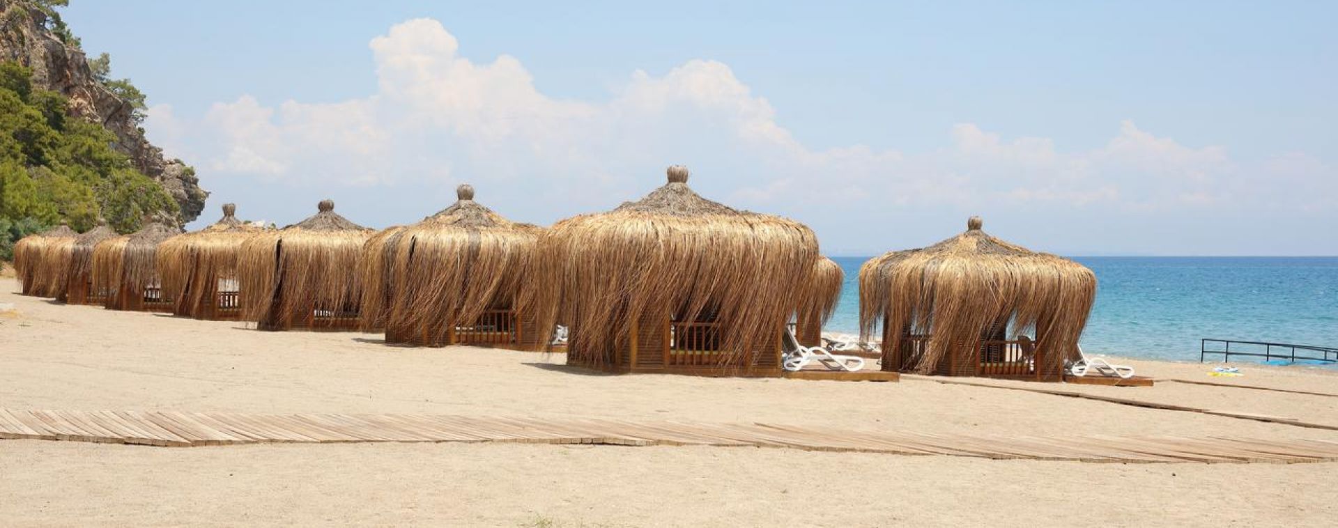 Собствен, пясъчно – чакълест, с дължина на плажната ивица 630 м. Чадъри, шезлонги и плажни кърпи на плажа и при басейна – безплатно.