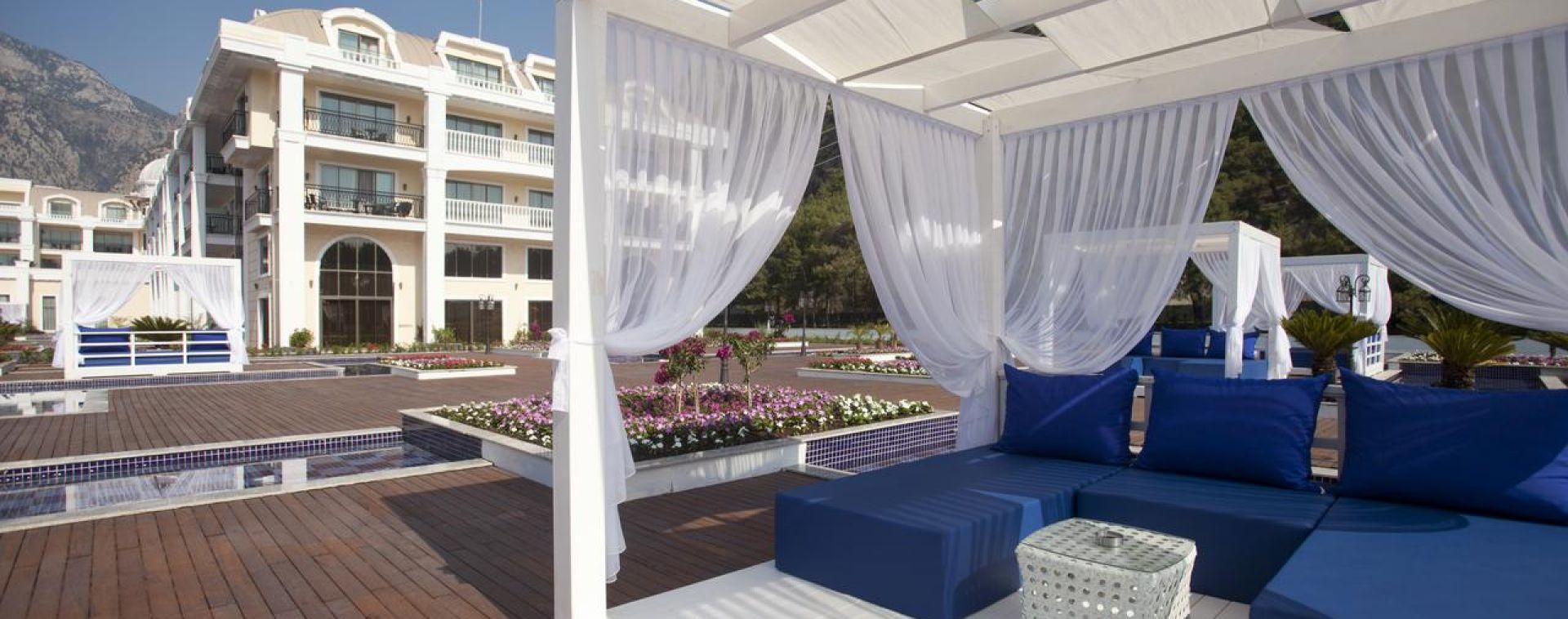 Намира се на 40 км от летище Анталия, на 28 км от центъра на Анталия, на 18 км от центъра на Кемер, на брега на морето. Построен 2014 г., на обща площ от 90 000 м2.