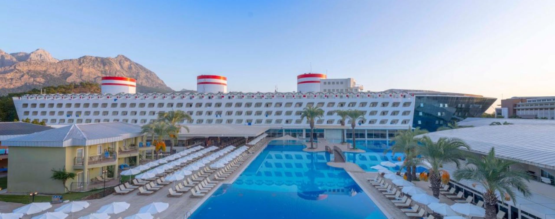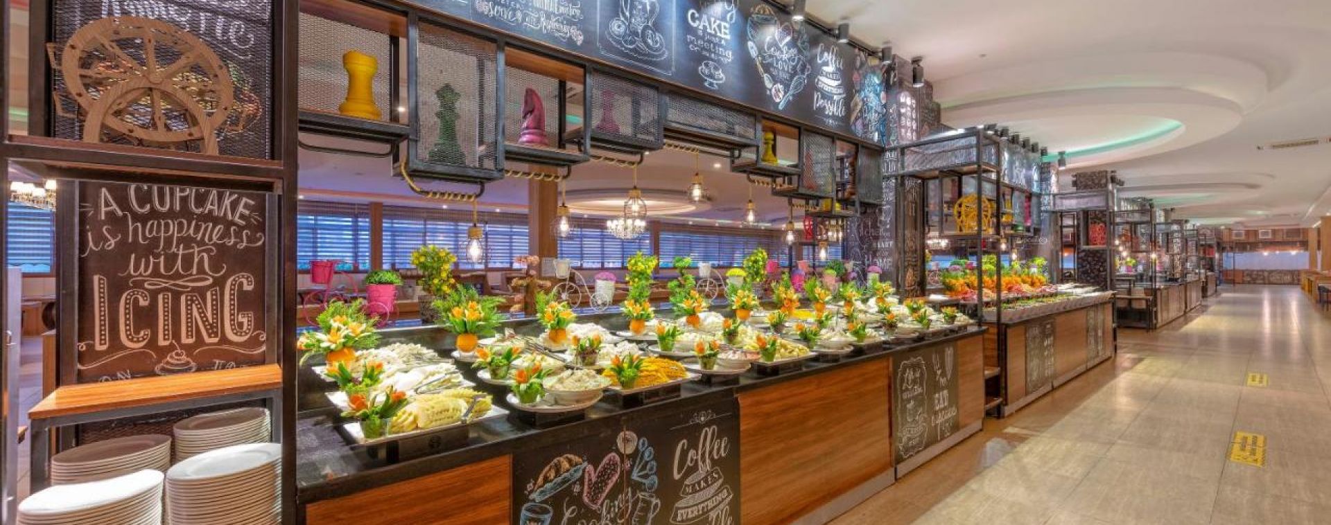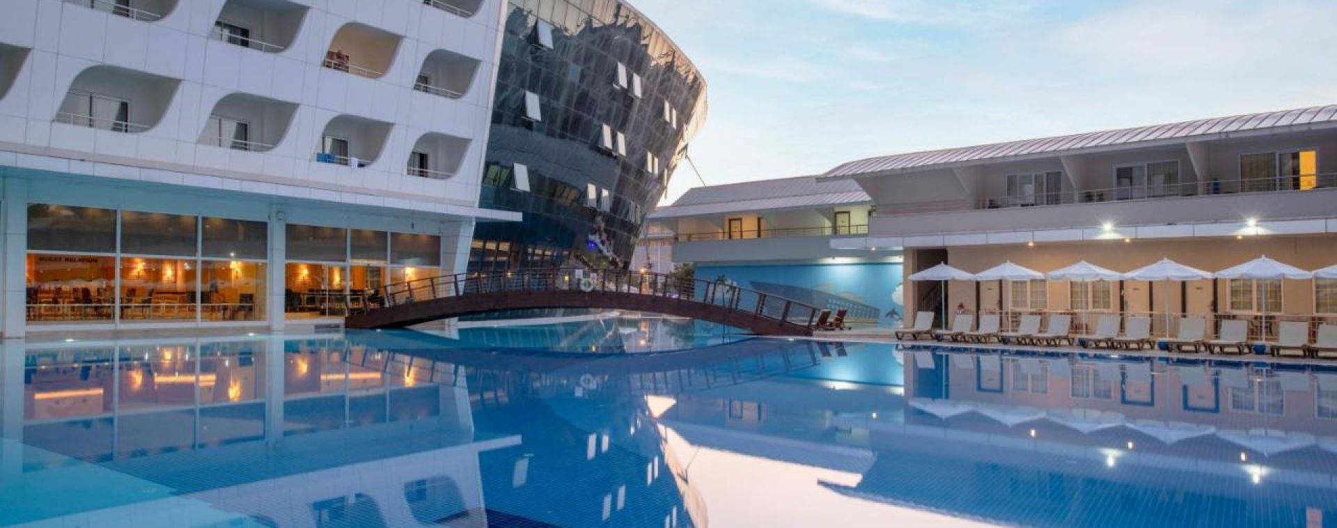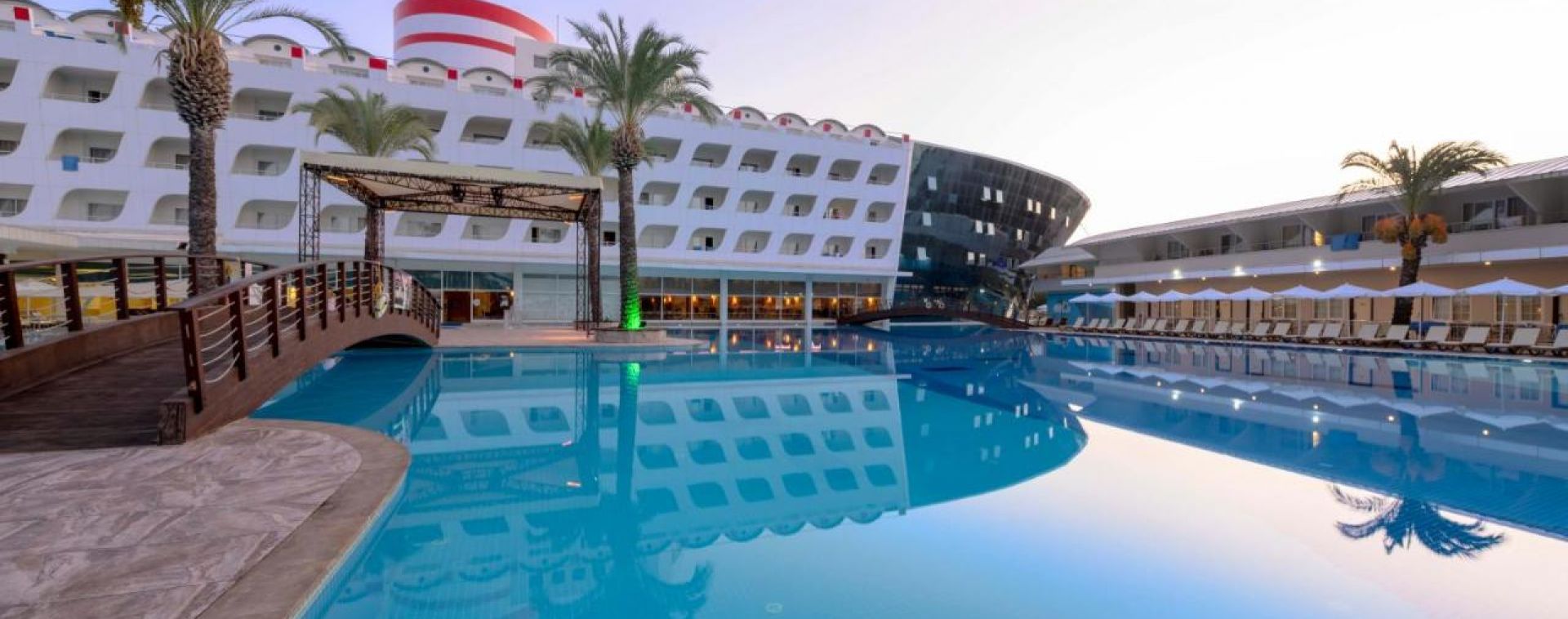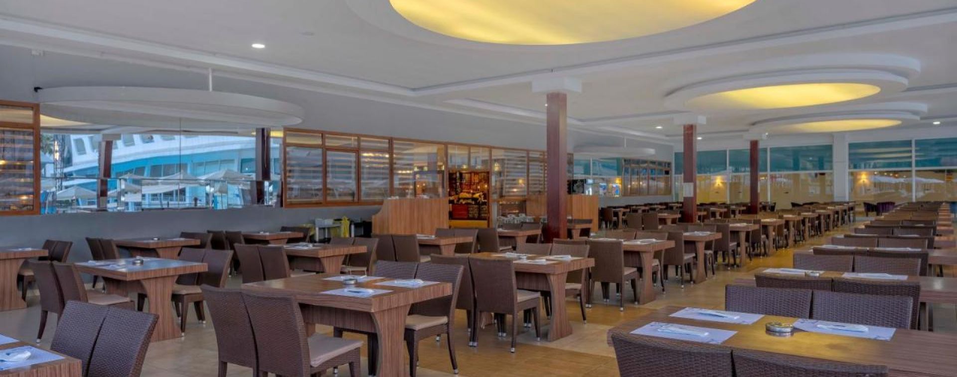 Основен ресторант, а-ла-карт ресторант (рибен - с предварителна резервация), 5 бара, сладкарница, открит и закрит басейн, водни пързалки, дискотека, амфитеатър, конферентни зали. За децата: Детски басейн с пързалки, анимация, мини клуб (4-12 г.), мини диско. Безплатни услуги: Сауна, турска баня, парна баня, фитнес, волейбол, анимация, паркинг. Платени услуги: Масаж, Спа център, фризьор, лекар, химическо чистене, билярд, рент -а-кар, тенис корт, тенис екипировка, осветление за тенис корт, магазини, водни спортове, WiFi интернет.