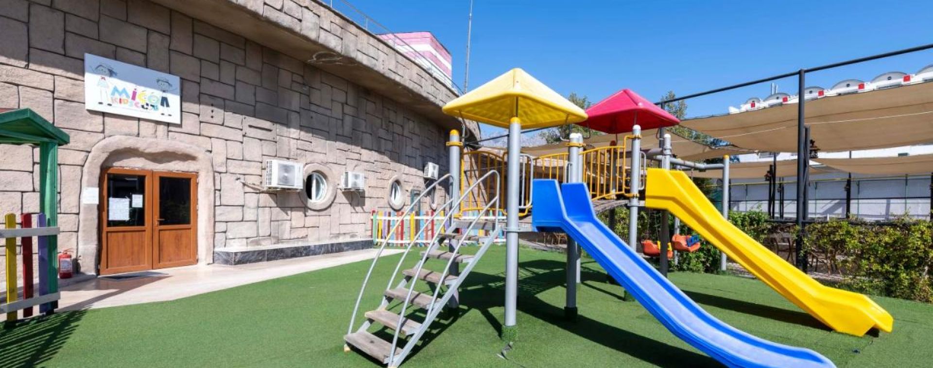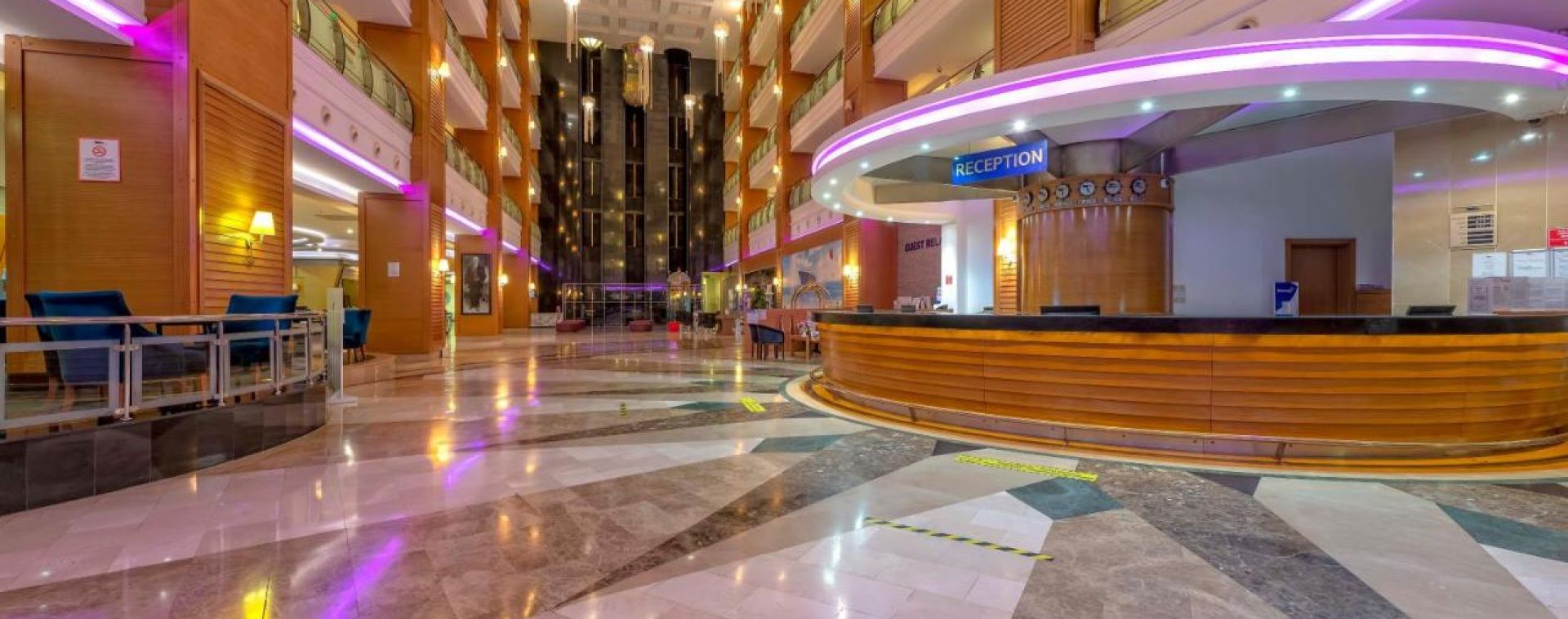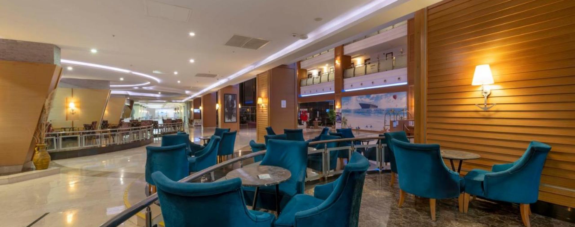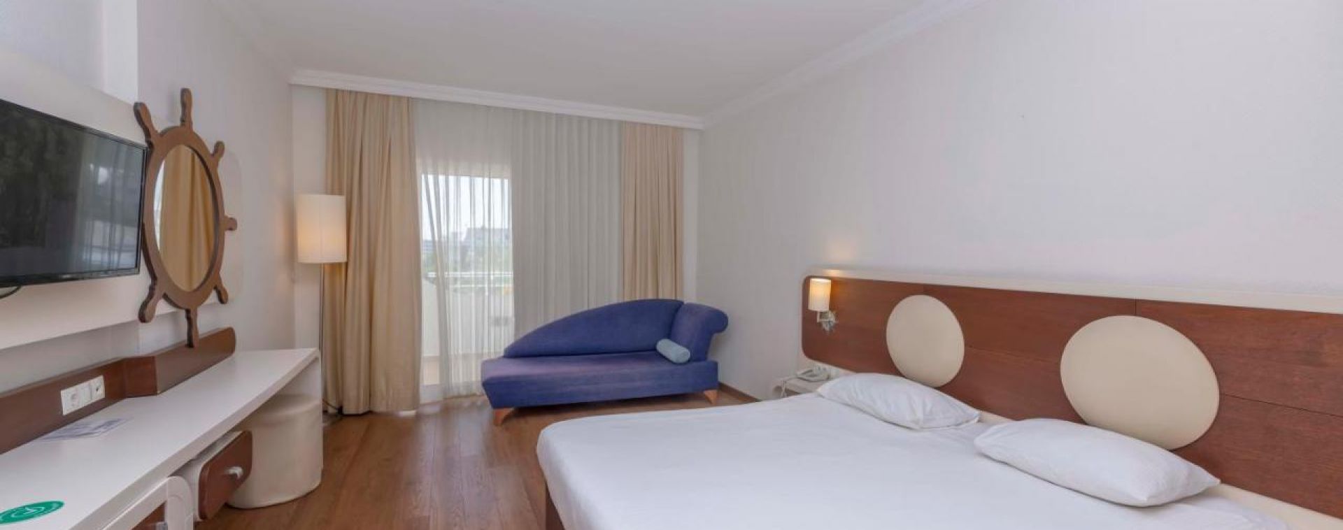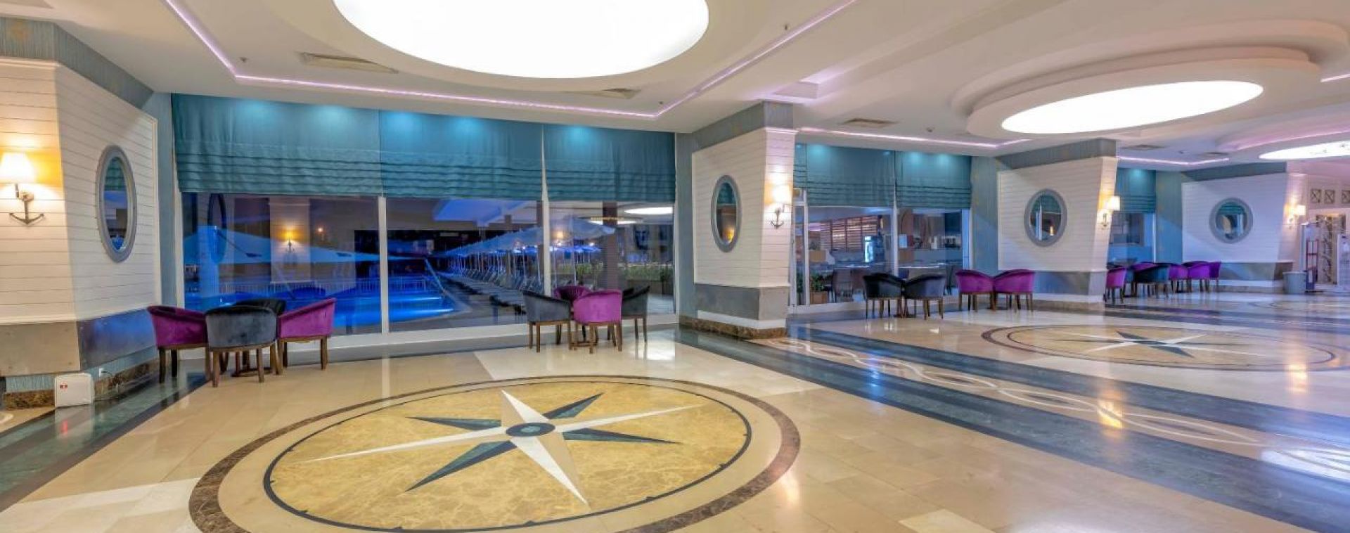 Основен ресторант, а-ла-карт ресторант (рибен - с предварителна резервация), 5 бара, сладкарница, открит и закрит басейн, водни пързалки, дискотека, амфитеатър, конферентни зали. За децата: Детски басейн с пързалки, анимация, мини клуб (4-12 г.), мини диско. Безплатни услуги: Сауна, турска баня, парна баня, фитнес, волейбол, анимация, паркинг. Платени услуги: Масаж, Спа център, фризьор, лекар, химическо чистене, билярд, рент -а-кар, тенис корт, тенис екипировка, осветление за тенис корт, магазини, водни спортове, WiFi интернет.