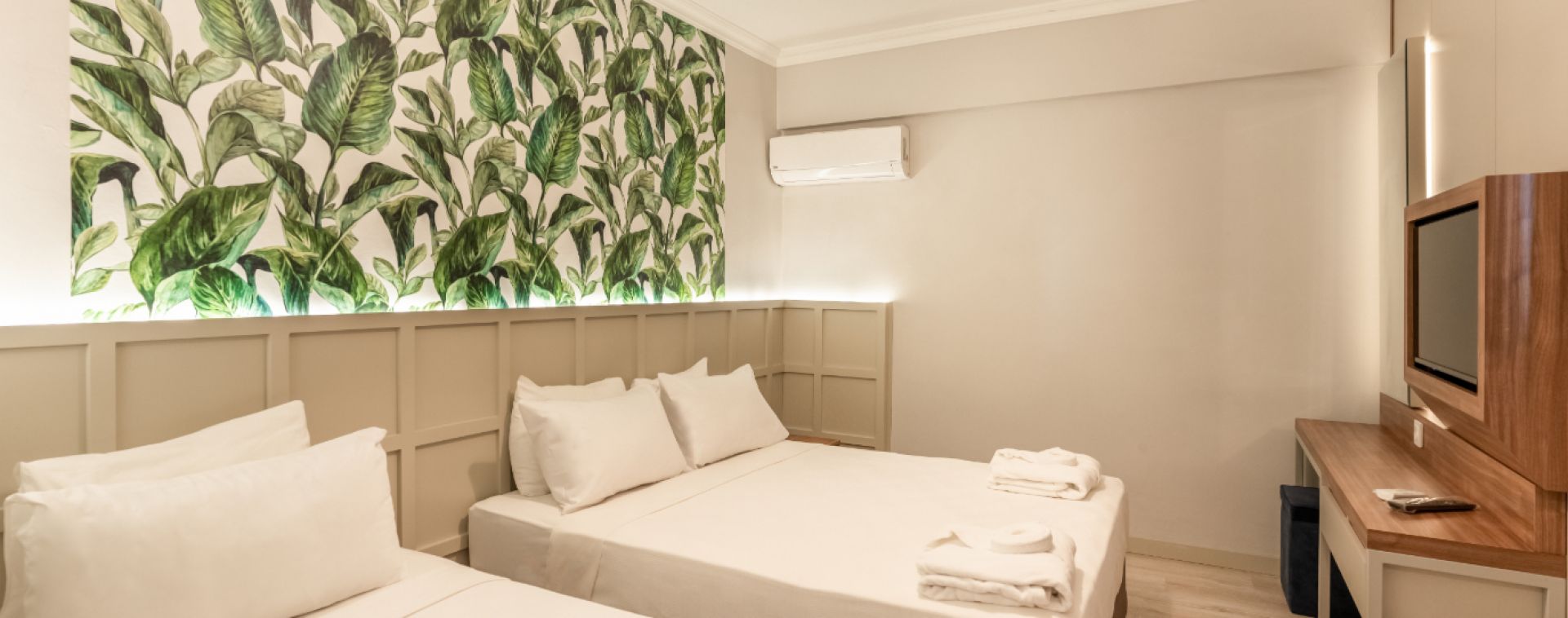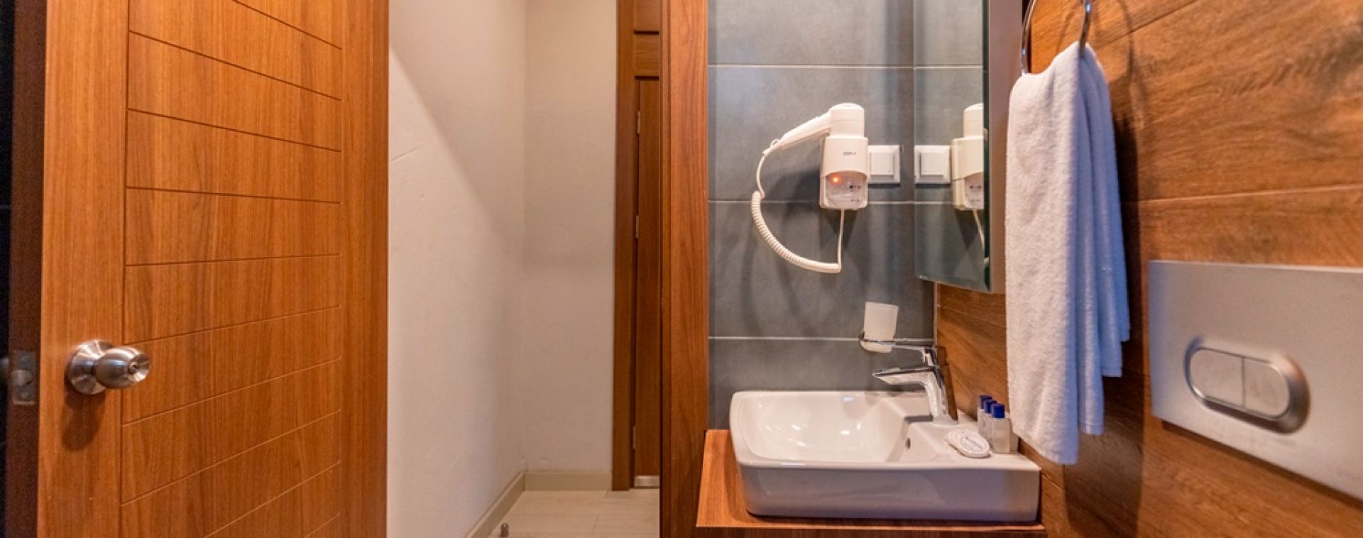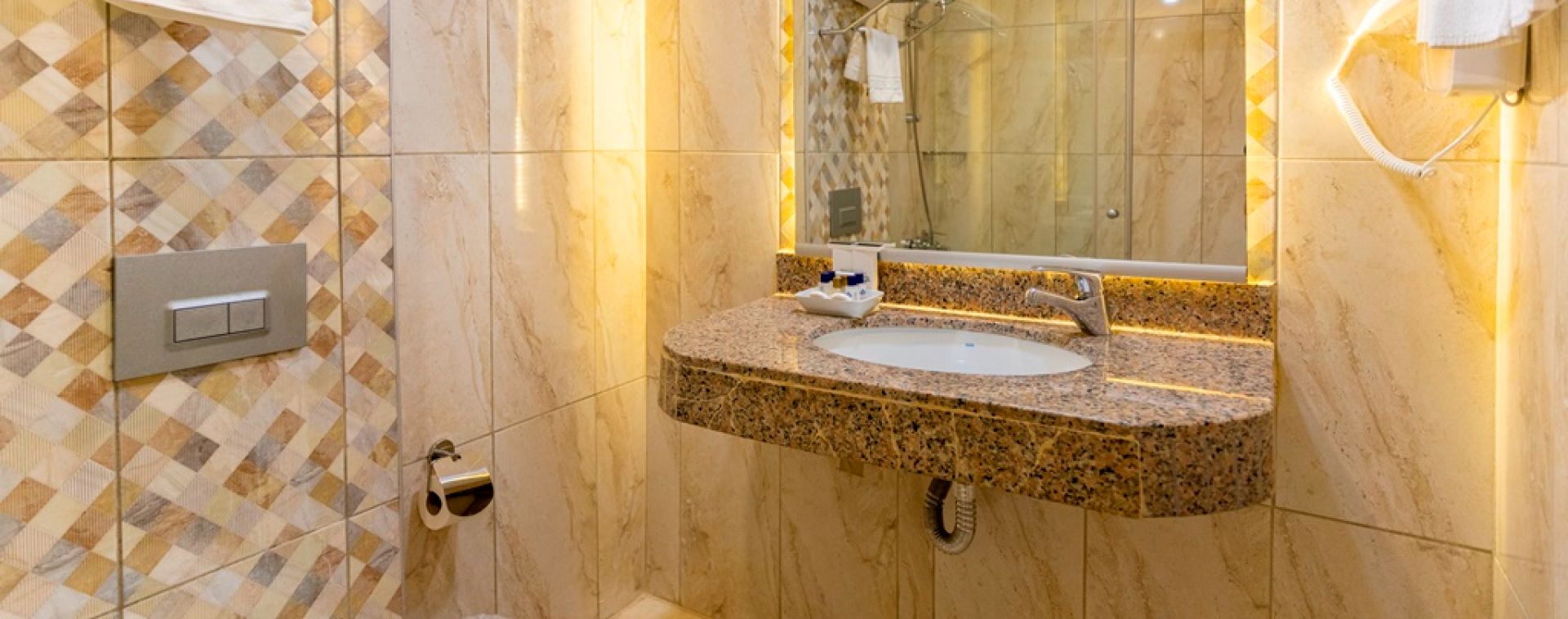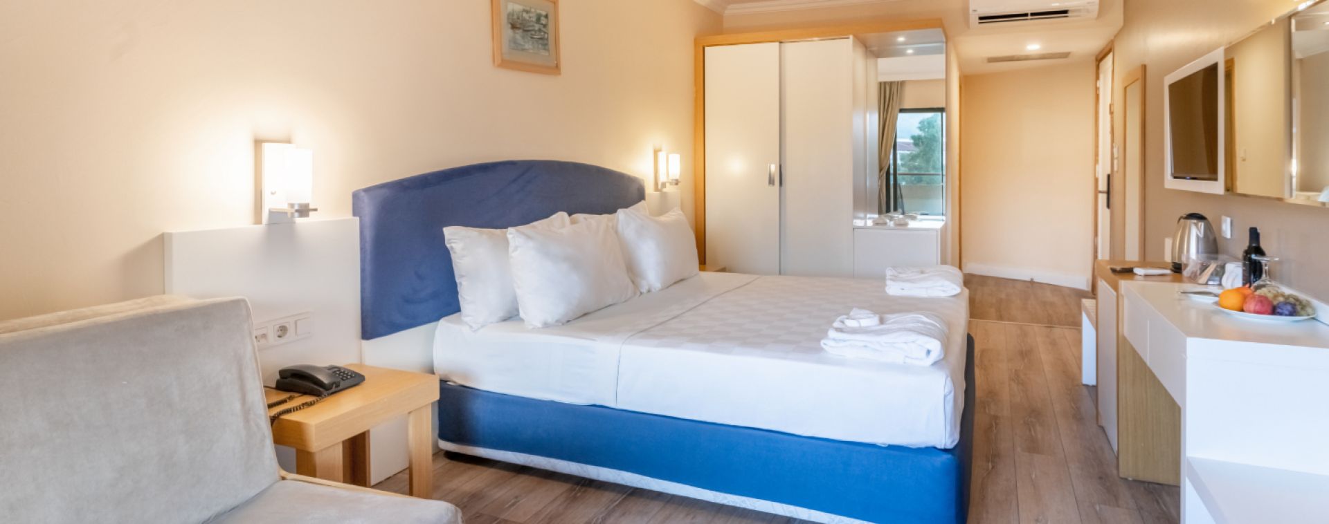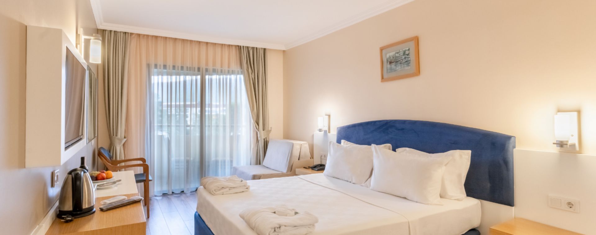 Климатик, сателитна телевизия, телефон, сейф, мини бар, баня с душ, сешоар, балкон. Почистване на стаите - всеки ден, смяна на бельото - 3 пъти седмично.
