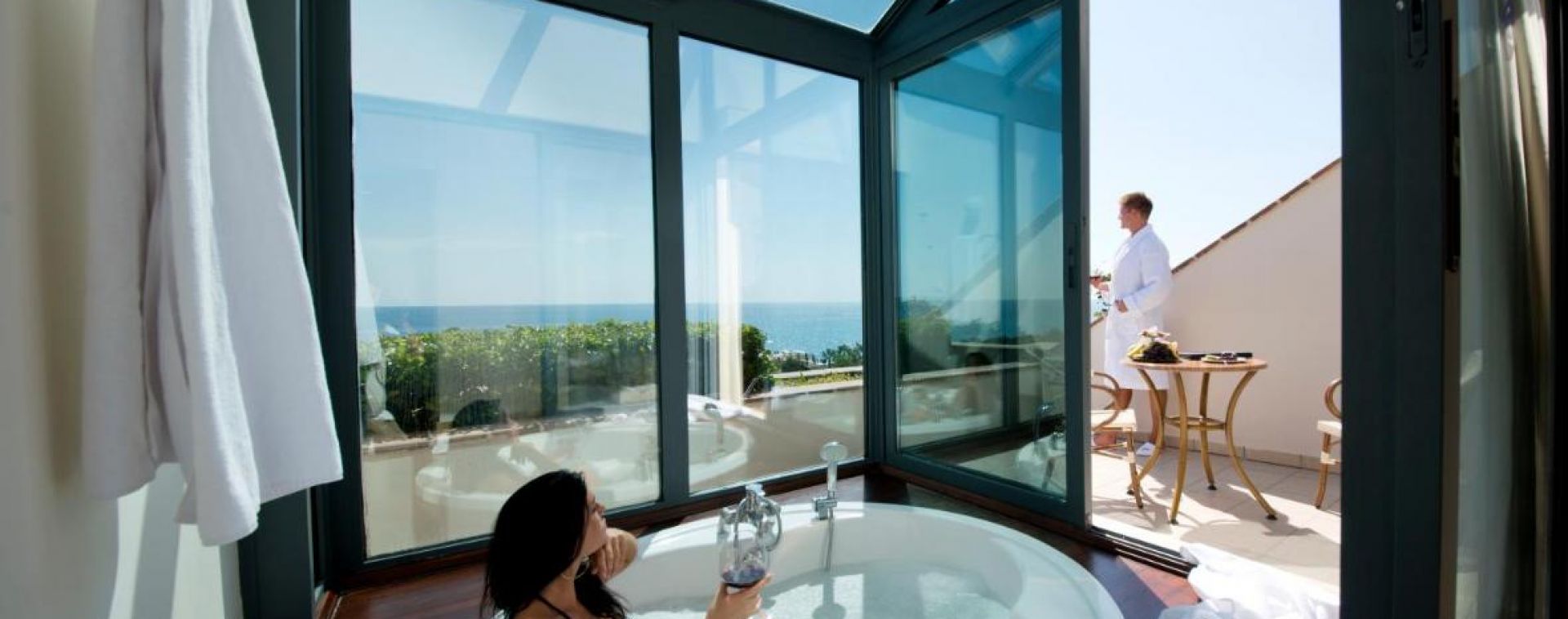 Стаи Main Block: 218 Standard room sea/pool side (изглед море/басейн -28 м2), 37 Jacuzzi Studios (1 спалня, 1 диван, 1 баня + джакузи - 35 м2).