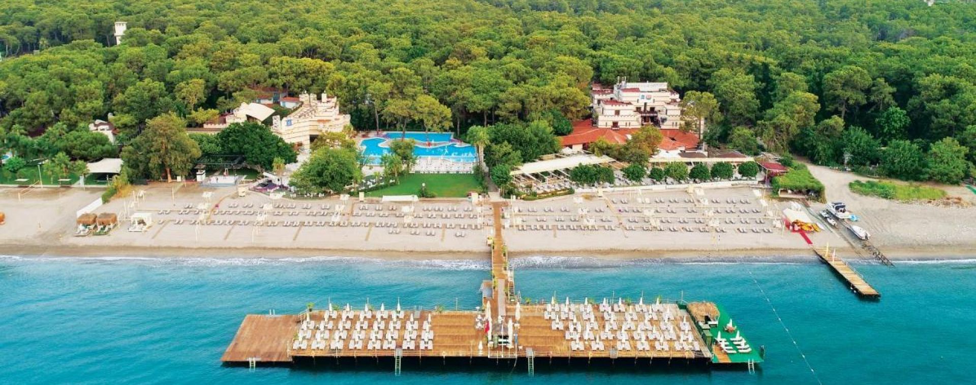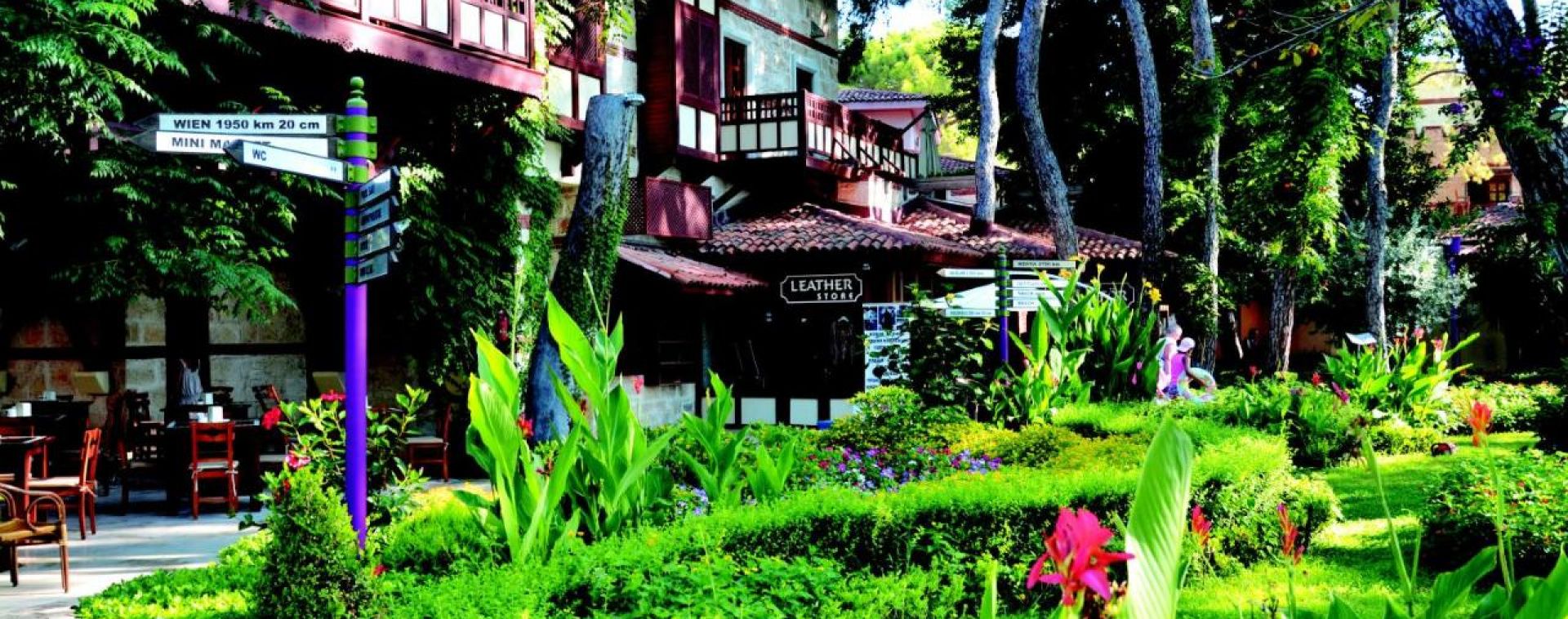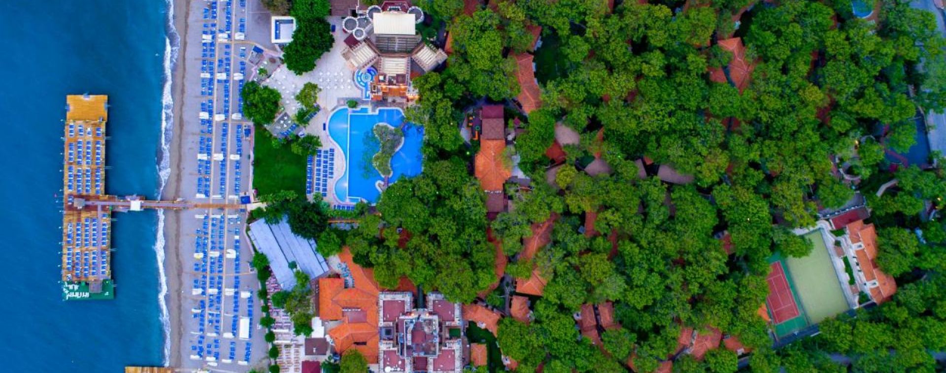 Хотелът разполага с основен ресторант, а-ла-карт ресторант(платен), сладкарница, 6 бара, 4 басейна, релакс басейн, аквапарк с 4 пързалки, СПА център, фитнес, анимация, конферентни зали, WI-FI(на основни зони), паркинг. За децата: детска площадка, детски басейн, детски водни пързалки, анимация, мини клуб(4-12г.), джуниър клуб(13-16г.), мини диско, Безплатни услуги: турска баня, сауна, тенис на корт(през деня), тенис на маса, плажен волейбол, дартс, аеробика, фитнес център, мини футбол, анимация, кану, водно колело, дискотека. Платени услуги: масаж, СПА-процедури, ракети и топки за тенис, билярд, водни моторни спортове, колела под наем, кино.