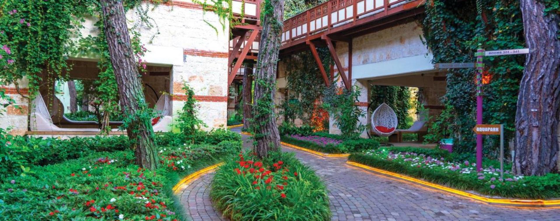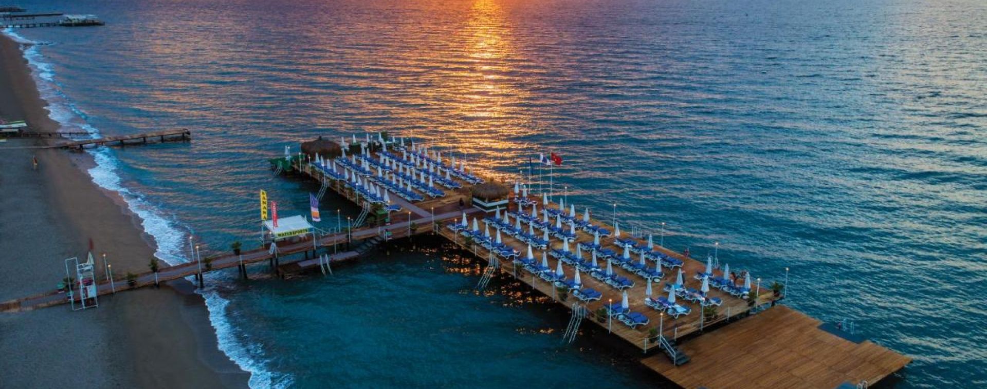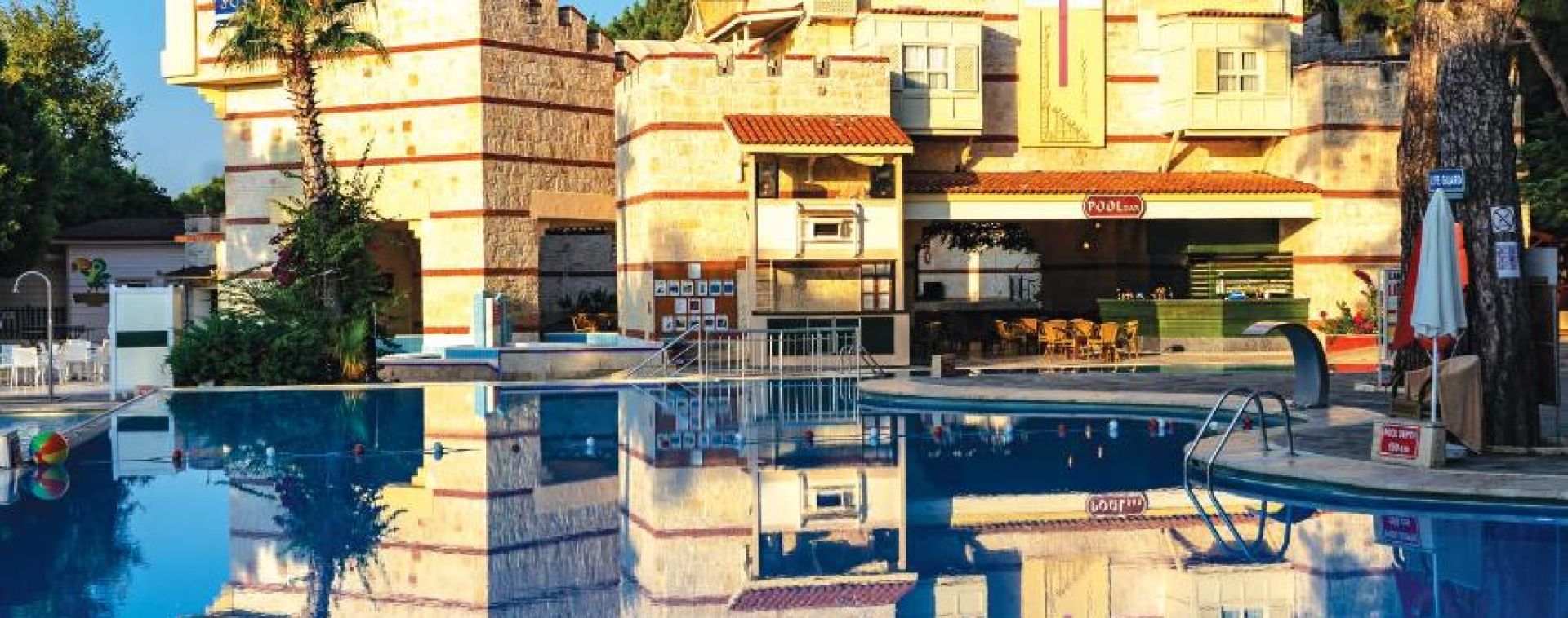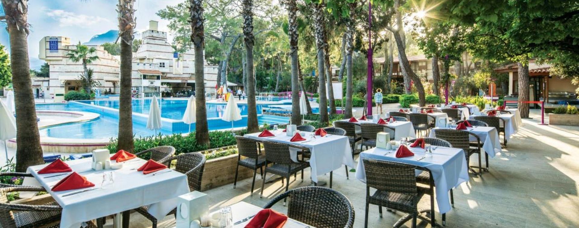 Хотелът разполага с основен ресторант, а-ла-карт ресторант(платен), сладкарница, 6 бара, 4 басейна, релакс басейн, аквапарк с 4 пързалки, СПА център, фитнес, анимация, конферентни зали, WI-FI(на основни зони), паркинг. За децата: детска площадка, детски басейн, детски водни пързалки, анимация, мини клуб(4-12г.), джуниър клуб(13-16г.), мини диско, Безплатни услуги: турска баня, сауна, тенис на корт(през деня), тенис на маса, плажен волейбол, дартс, аеробика, фитнес център, мини футбол, анимация, кану, водно колело, дискотека. Платени услуги: масаж, СПА-процедури, ракети и топки за тенис, билярд, водни моторни спортове, колела под наем, кино.