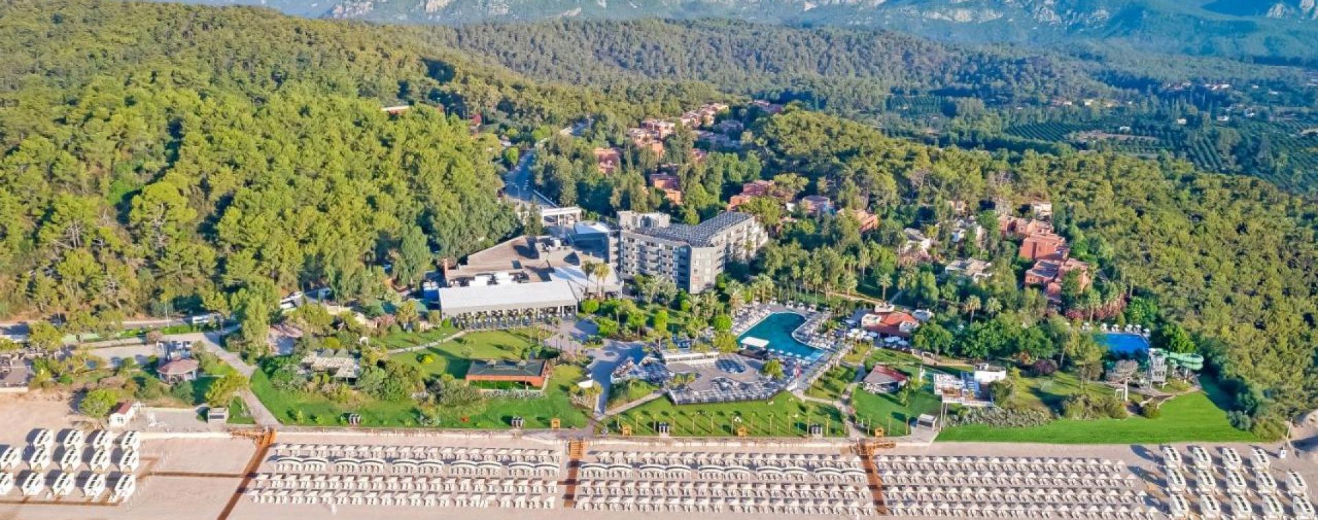 Намира се на 70 км. от летище Анталия, на 18 км. от центъра на Кемер, на брега на морето. Общата площ на хотела е 120.000 м2, напълно реновиран през 2023г.