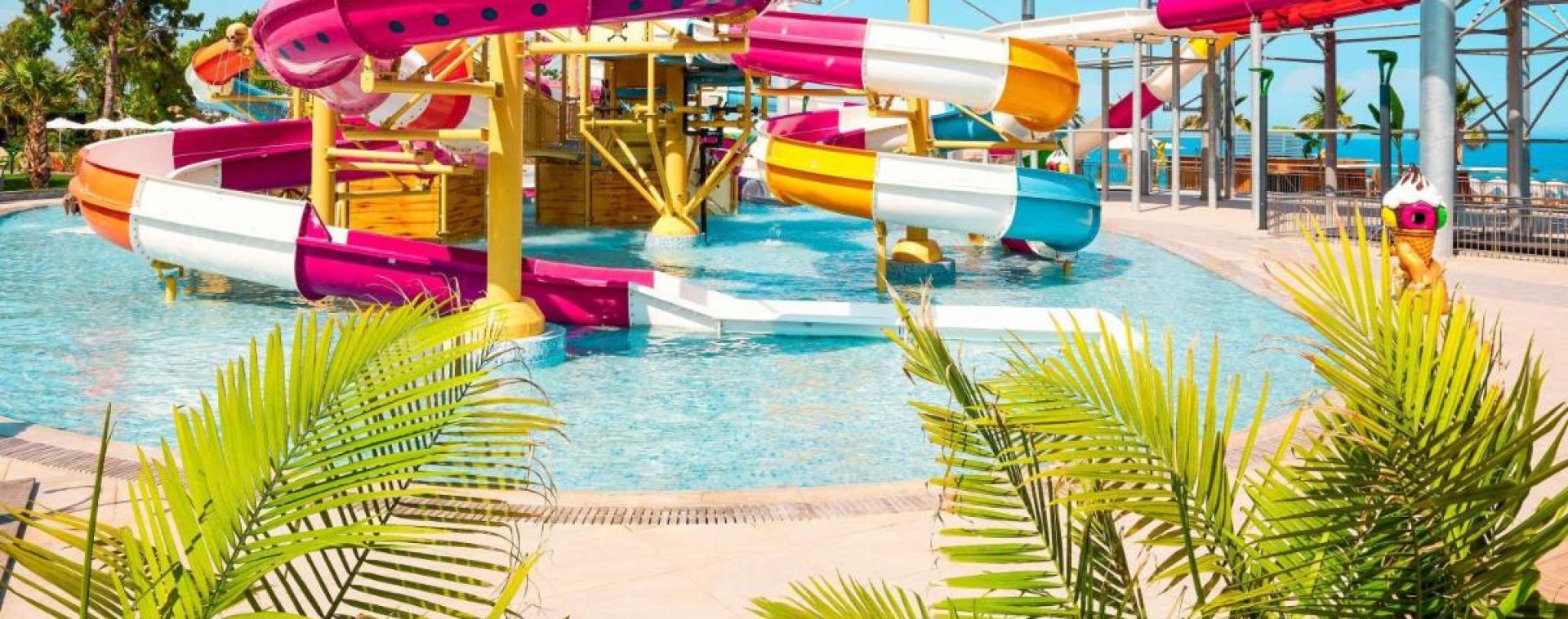 За децата: Детски открит басейн, 6 водни пързалки, мини клуб (4 – 12 г), мини кино, мини дискотека, детска площадка, бебешка кошара, столче за хранене в ресторанта (при наличност).