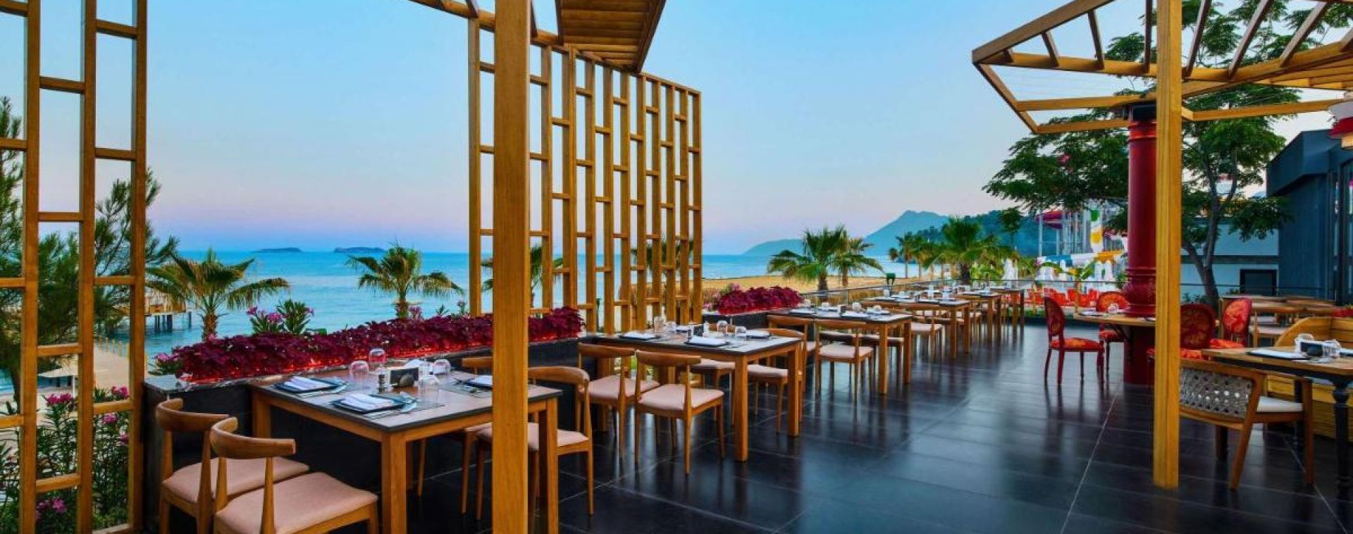 Основен ресторант, 2 а-ла-карт ресторанта (турски, средиземноморски - срещу заплащане), 7 бара, 4 открити и 1 закрит басейн, СПА център, аквапарк с 12 водни пързалки (6 за възрастни, 6 за деца), 3 конферентни зали, Wi-Fi (на територията на целия хотел).
