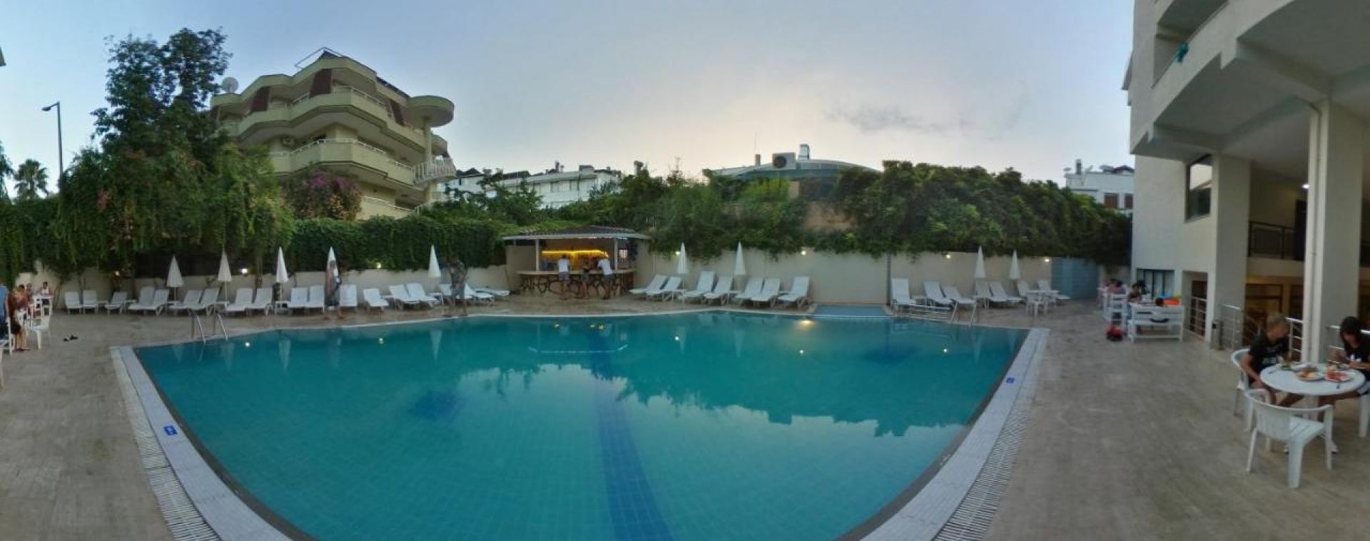 Намира се в района на Кемер, в близост. до центъра на Кемер, на 45км. от центъра на Анталия, на 55км. от летището на Анталия, на брега на морето със собствен плаж-чакъл, шезлонзи и чадъри-безплатно.