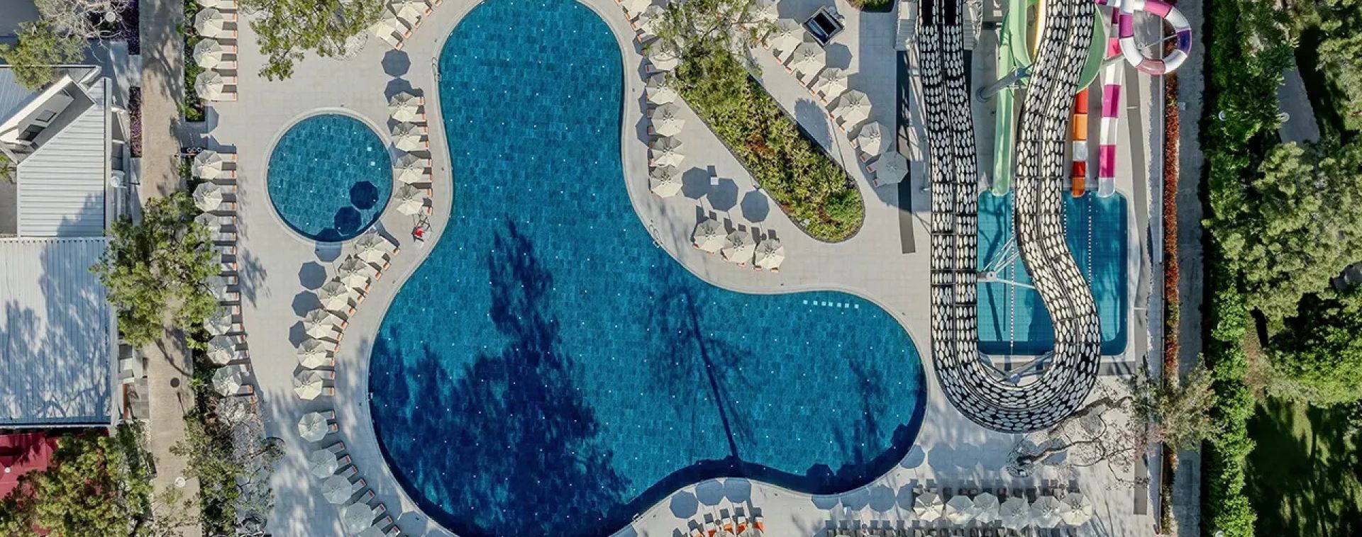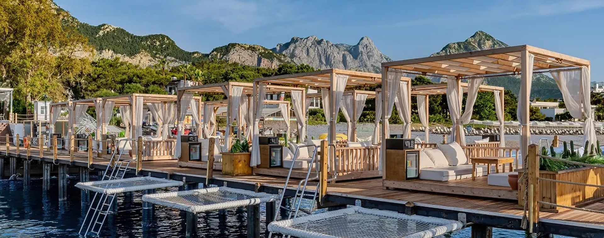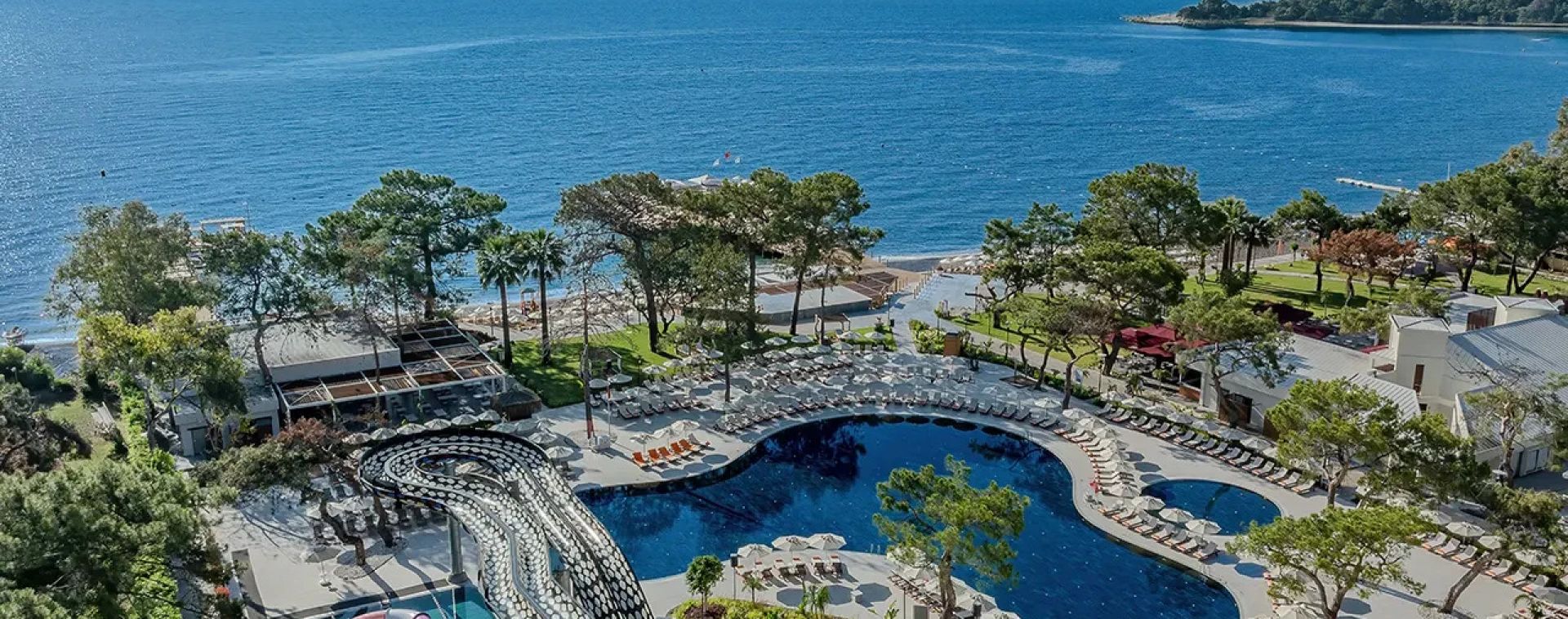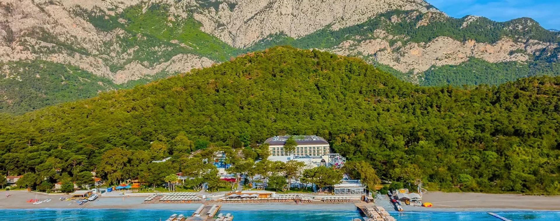 Намира се на 52 км от летище Анталия, на 45 км от центъра на Анталия, на 5 км от центъра на Кемер, на брега на морето. Изцяло реновиран през 2024 г., на обща площ от 60 000 м2.