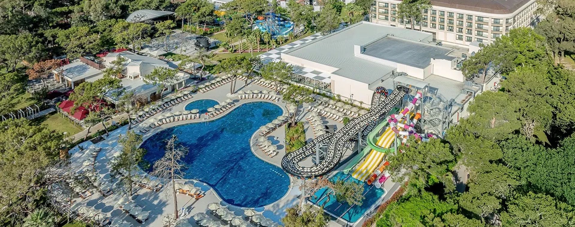 Основен ресторант, 2 а-ла-карт ресторанта (средиземноморски и стек – платени, с предварителна резервация), сладкарница, 8 бара, 2 открити и 1 закрит (отопляем) басейн, аквапарк, СПА център, дискотека, магазини, конферентна зала.