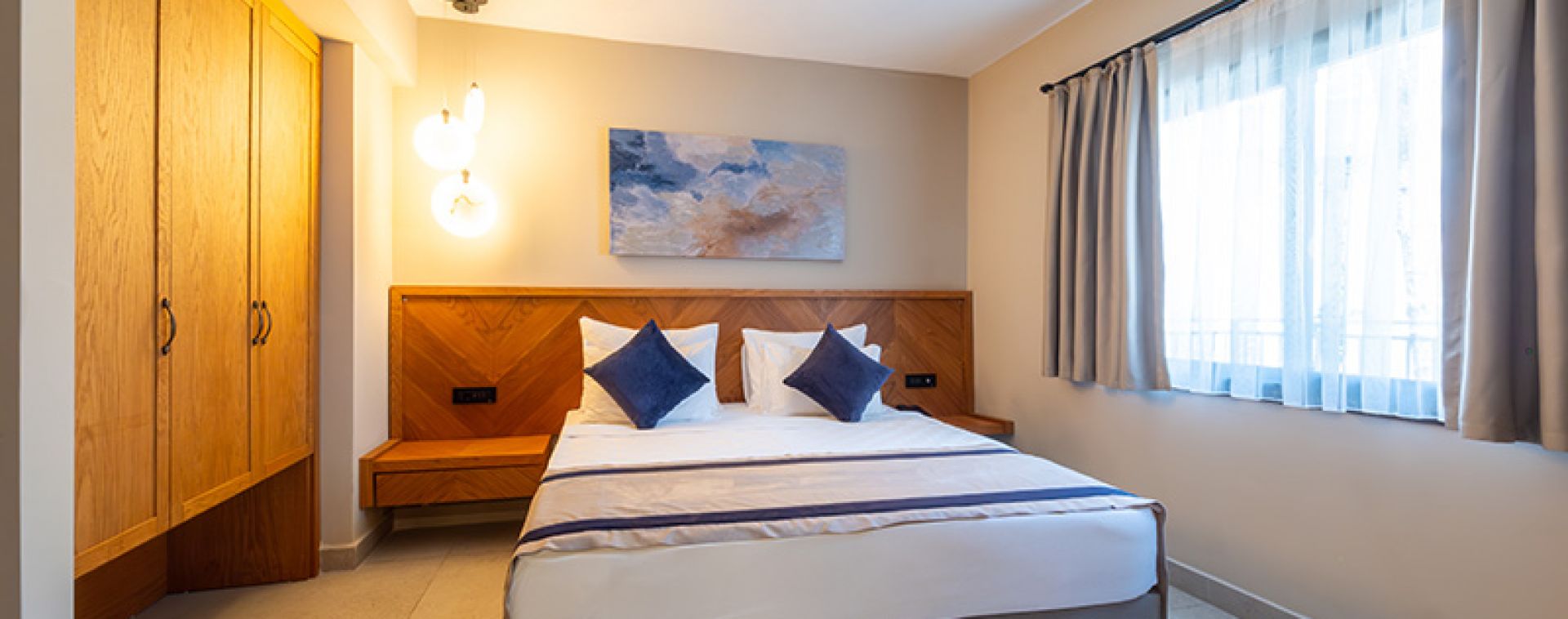 Всички стаи са оборудвани с климатик, телевизор, телефон, баня с душ, сешоар, сет за чай/кафе, минибар (безплатен), сейф (безплатен), балкон.
