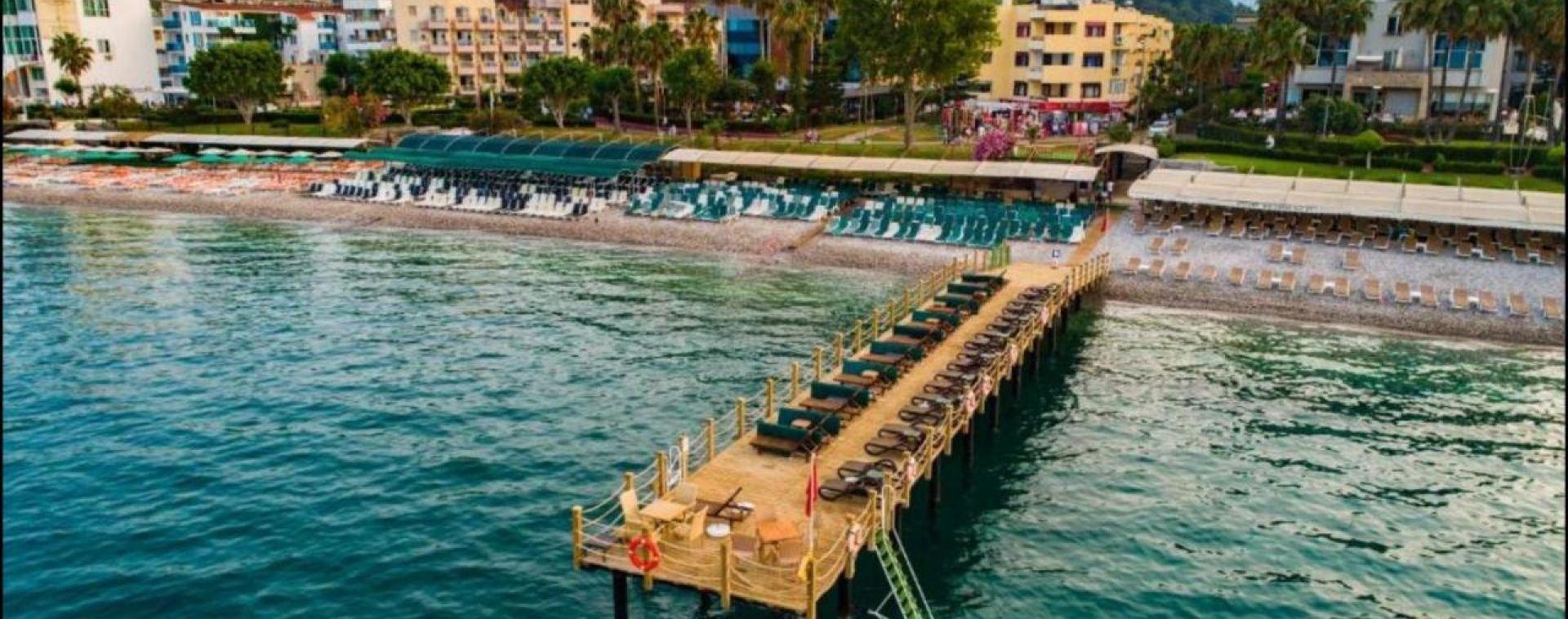 Намира се на 60 км. от летище Анталия, на 40 км. от центъра на Анталия, в района на Кемер, на 50 м. от брега на морето, през път. Открит 2007 г., реновиран  2018 г. (общи части), с обща площ 9 000 кв.м.