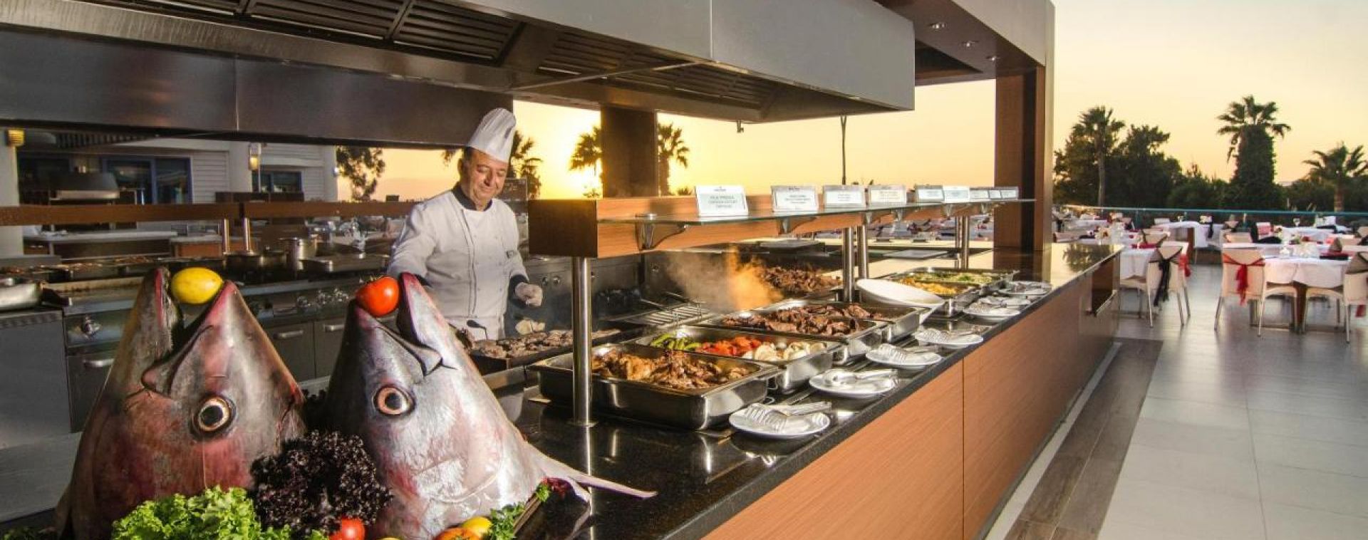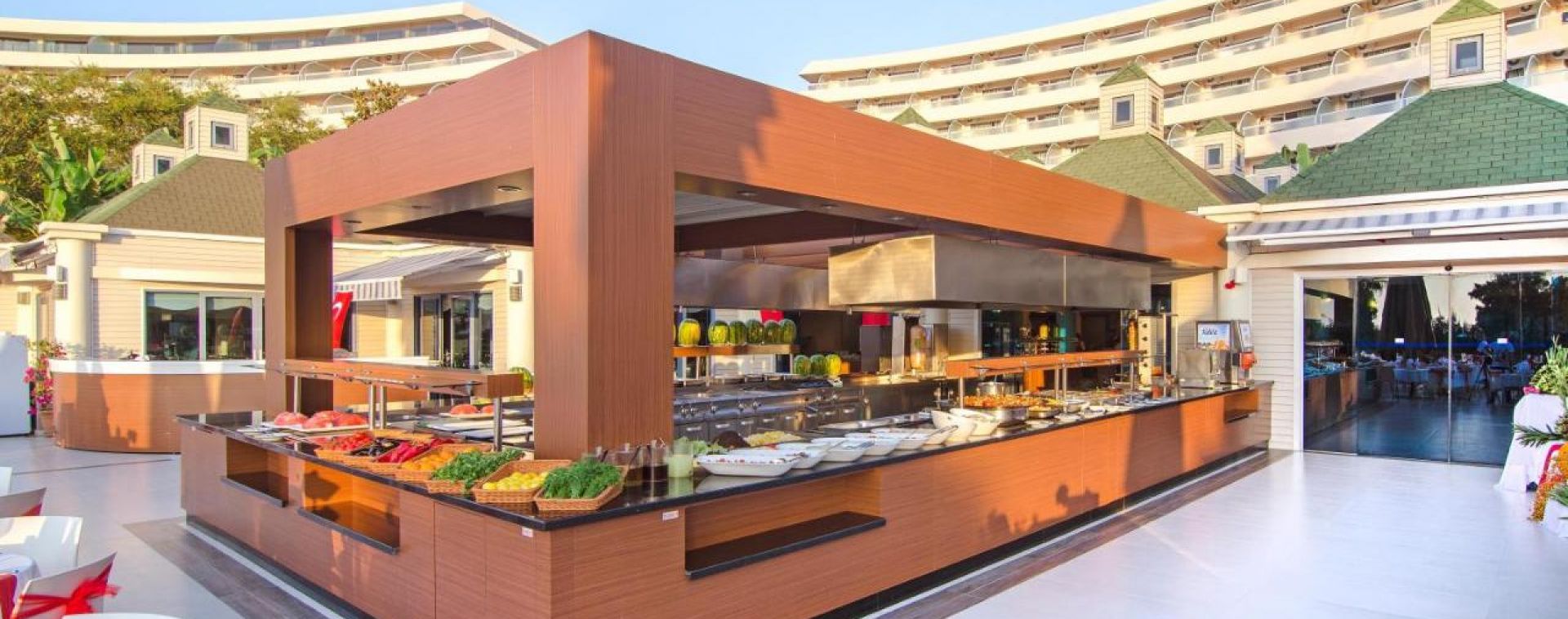 Основен ресторант, 3 а-ла-карт ресторанта (рибен, отомански и италиански - с предварителна резервация, едно безплатно посещение на един от тях), 7 бара, сладкарница, 2 открити басейна, магазини, СПА център, дискотека.
