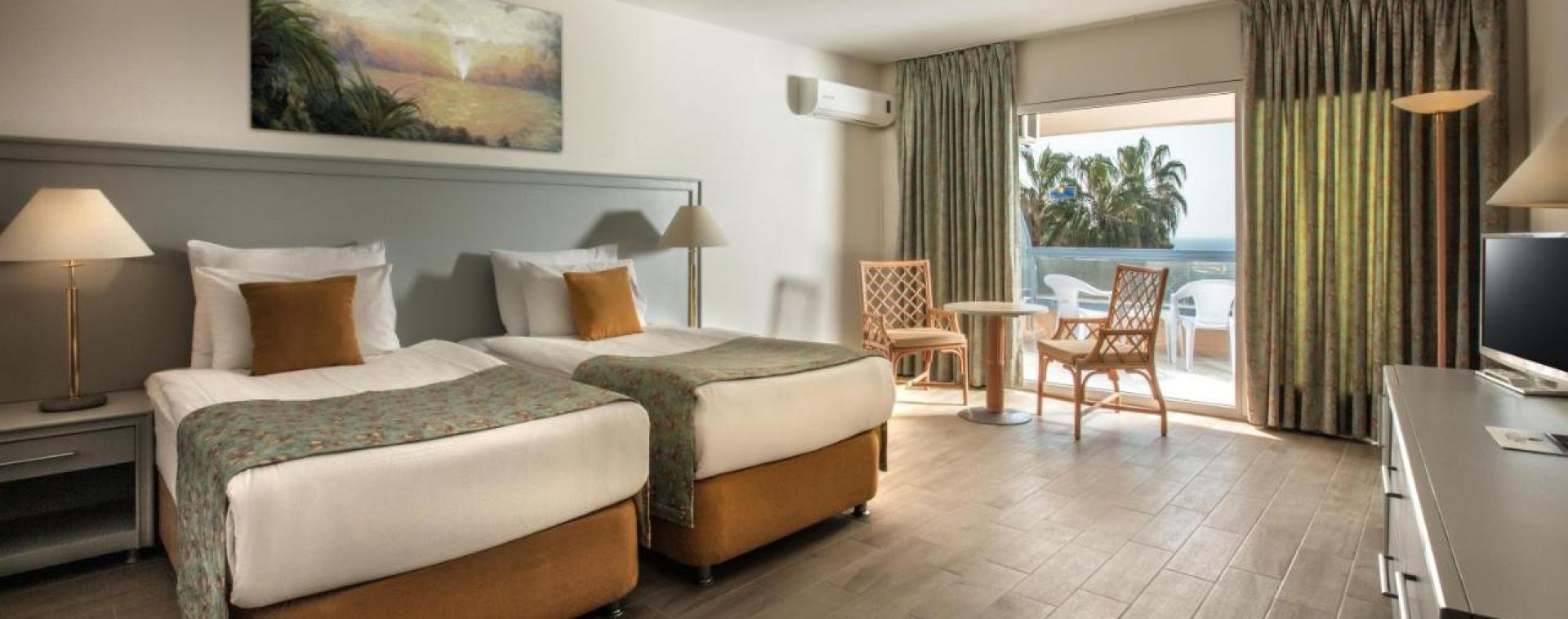 Хотелът разполага с 319 стаи, от които 313 стандартни (35 кв.м) и 6 суита, разположени в три шестетажни блока. Всички стаи са оборудвани с климатик, телевизор, телефон, баня с вана, сешоар, минибар (платен), кана за топла вода, сейф (безплатно), балкон, Wi-Fi интернет (безплатно). Почистване на стаите и смяна на кърпите - всеки ден, смяна на спалното бельо - 2 пъти в седмицата.