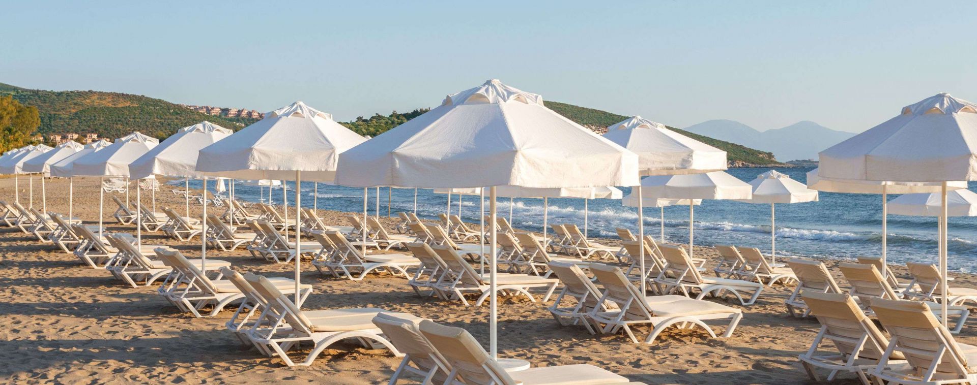 Собствен, пясъчно-чакълест на 2,5 км. от хотела. Чадъри, шезлонги и плажни кърпи на плажа и при басейна - безплатно. Функционира безплатен шатъл до плажа на всеки час от 10:00 до 16:00 часа в периода от 01 май до 30 октомври. Барът на плажа предлага безплатни безалкохолни напитки, бира и закуски.