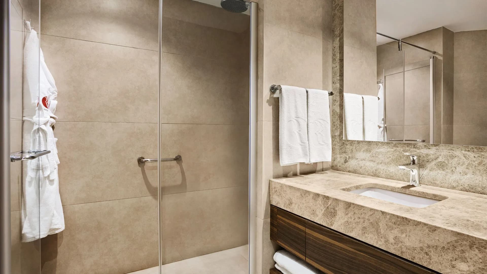 Хотелът разполога с общо 265 стаи, разположени в 4 блока: Superior Room (34 м²), Junior Suite Room (1 спалня, хол - 53 м²), Family Suite Room (2 спални, хол - 71 м²). Всички стаи са оборудвани с климатик, телевизор, телефон, баня с душ или вана, сешоар, сет за чай/кафе, минибар (безплатно еднократно зареждане с вода и безалкохолни напитки при настаняване), сейф (безплатен), балкон, Wi-Fi. Почистване на стаите – всеки ден, смяна на спалното бельо – 2 пъти в седмицата, смяна на кърпите – 3 пъти в седмицата.