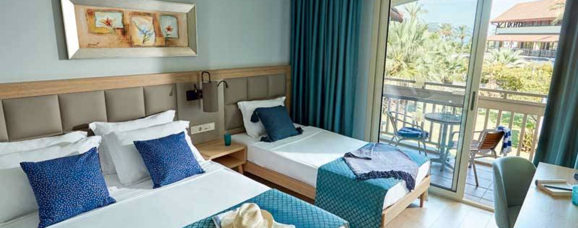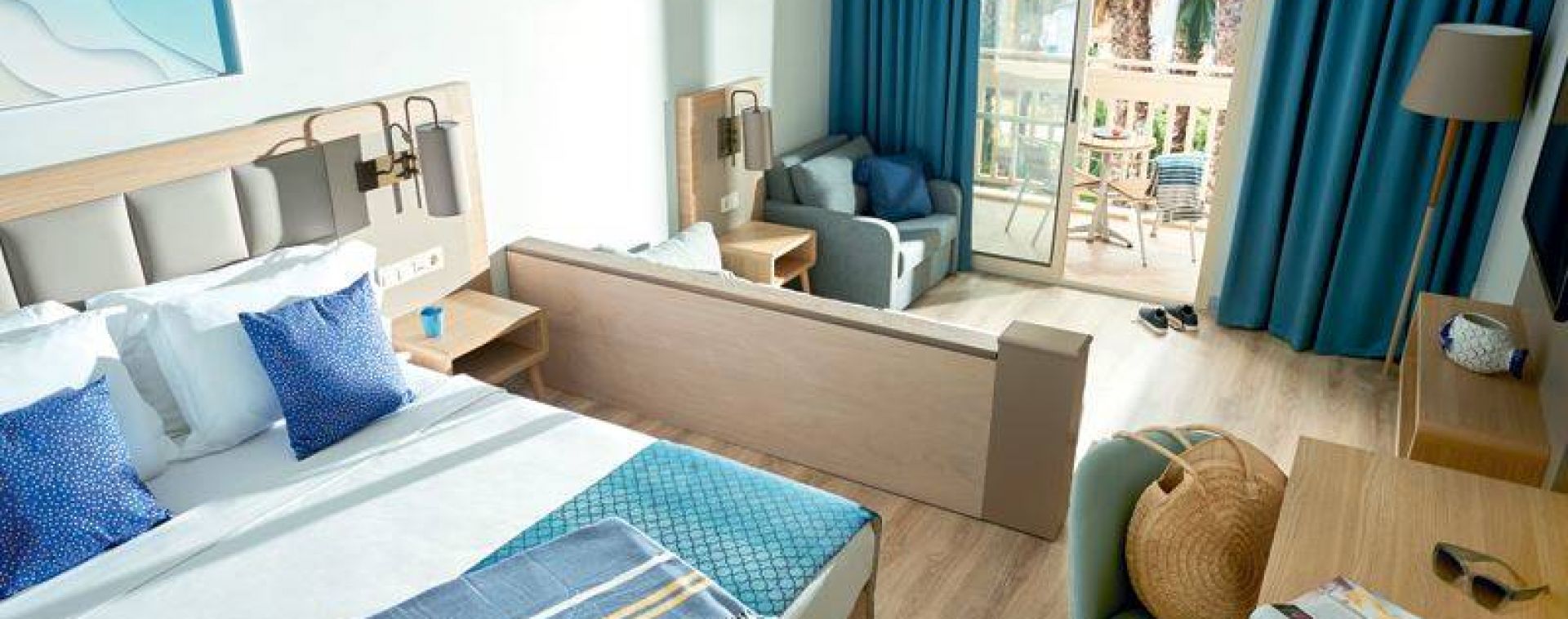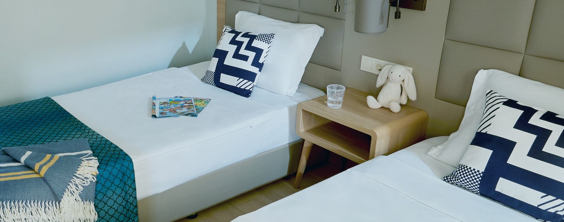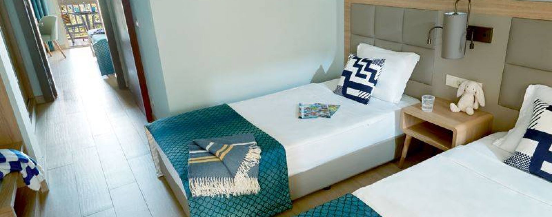 Хотелът разполага с общо 335 стаи, от които 83 Standard Room (25 м²), Family Room (1 спалня - 35 м²), Family Suites (2 спални, 1 баня - 37 м²), Superior Family Suites (3 спални, 2 бани - 55 м²), Villa (2 спални, 2 бани - 90 м²), стаи за хора с увреждания. Всички стаи са оборудвани с климатик, телевизор, телефон, баня с душ, сешоар, сет за чай/кафе, минибар (срещу заплащане), сейф (безплатен). Почистване на стаите и смяна на кърпите – всеки ден, смяна на спалното бельо – 2 пъти в седмицата.