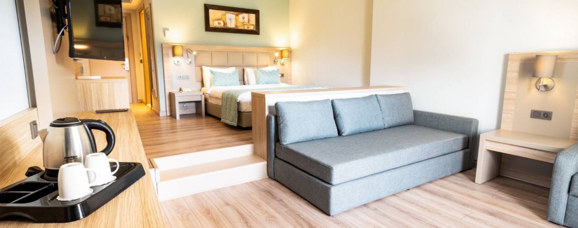 Хотелът разполага с 489 стаи: Standard Room (25 м²), Promo (25 м²), Superior Room (35 м²), Family Room (2 спални със/без свързваща врата - 35 м²), Superior Family Suite (2 спални, две бани - 55 м²) , Family Suite (2 спални, 1 баня - 41 м²) и стаи, пригодени за хора с ограничена подвижност (23 м2). Всички стаи са оборудвани с климатик, телевизор, телефон, баня с душ/вана, сешоар, сет за чай/кафе, минибар (ежедневно зареждане с безалкохолни напитки и вода-безплатно), сейф (безплатен), балкон. Почистване на стаите – всеки ден, смяна на спалното бельо и кърпите – 3 пъти в седмицата.