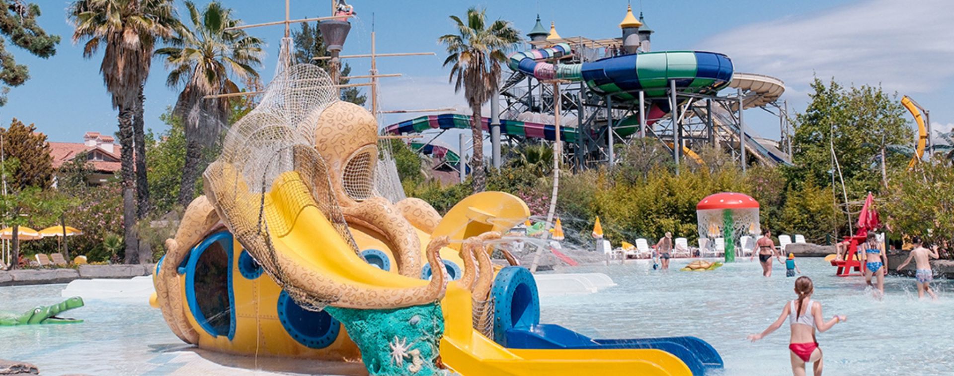 На разположение на гостите на хотела е аквапарк, който разполага с 31 водни пързалки, от които няколко екстремни (Super combo,Screamer, Crazy Raft, Boomerango, Space Bowl и др.), басейн със 7 вида изкуствени вълни, 400 метра дълга Lazy River, Lily Pad - място за срещи на родители и техните деца, а за по-малките деца са налични: голяма детска зона с пиратски кораб с 6 пързалки и интерактивни играчки, комплекс от пързалки „Подводен октопод“, жабешка пързалка и разбития кораб. Основни правила за ползване на Аквапарка: Не се препоръчва за хора с физически увреждания, сърдечни оплаквания и бременни жени. Деца на възраст под 12 години трябва да бъдат придружени от възрастен. Не се допуска използването на някои от пързалките от деца с височина под 120 см. Всички деца под 3-годишна възраст се изискват да носят "swim" памперси. Консумацията на хранa и напитки на теритотията на аквапарка е срещу заплащане.