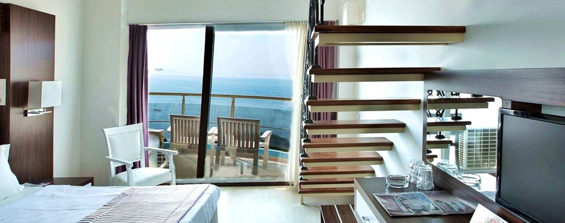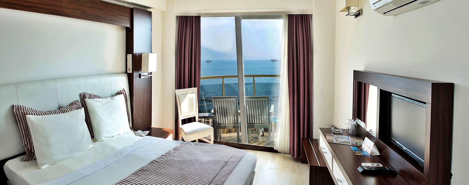 Хотелът разполага 137 стаи, от които 127 стандартни (103 с изглед море и 24 с изглед градина, 20-24 м²), 8 дуплекс фамилни (2 единични легла на долния етаж и спалня на горния етаж, без свързваща врата, 25-26 м²), 1 суит и 1 disabled (пригоденa за хора с ограничена подвижност - 30 м²). Всички стаи са оборудвани с климатик, телевизор, телефон, баня с душ/вана, сешоар, минибар, сейф (безплатен), балкон.