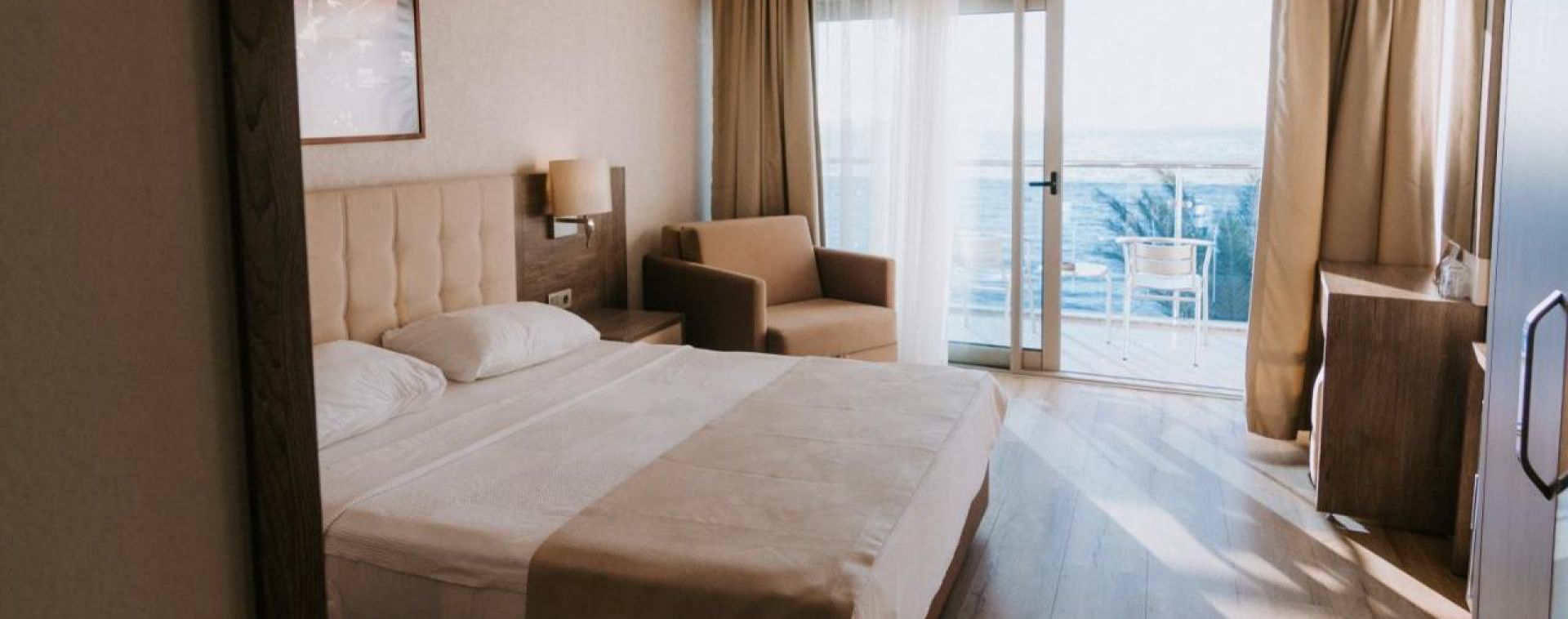 Хотелът разполага със 76 стаи, от които 12 делукс стаи (с изглед море и баня с панорамна гледка море), 64 стандартни стаи (25-30 кв.м), от които 44 с изглед море и 20 с изглед градина. Всички стаи са оборудвани с климатик, телевизор, телефон, баня с душ, сешоар, мини бар (платен), сейф (платен). Почистване на стаите - всеки ден, смяна на кърпи и спално бельо - 2 пъти в седмицата.