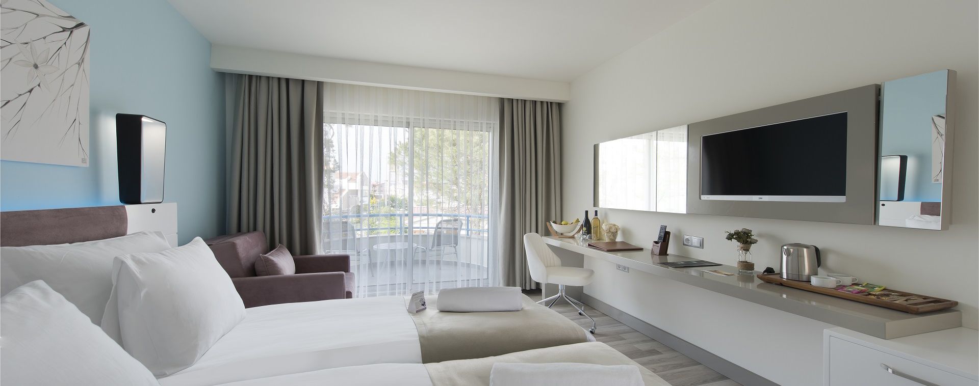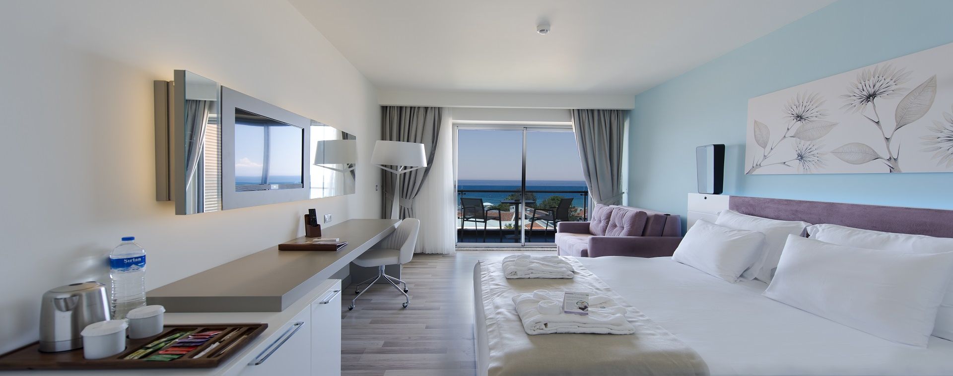 Основна сграда: 49 Deluxe room land view (29-32 кв.м); 21 Deluxe room sea view (29-32 кв.м); 7 Deluxe superior sea view room (разполага с голяма тераса с кът за отдих - 50 кв.м); 2 Handicapped (пригодени за хора с ограничена подвижност); 43 Family suite side sea view (1 стая със спалня, 1 стая с единични легла, 1 баня- 38-45 кв.м); 12 Family suite land view (1 стая със спалня, 1 стая с единични легла, 1 баня - 38-45 кв.м); 1 Senior Suite (50-90 кв. м), 4 Penthouse Suite (50-90 кв. м).
