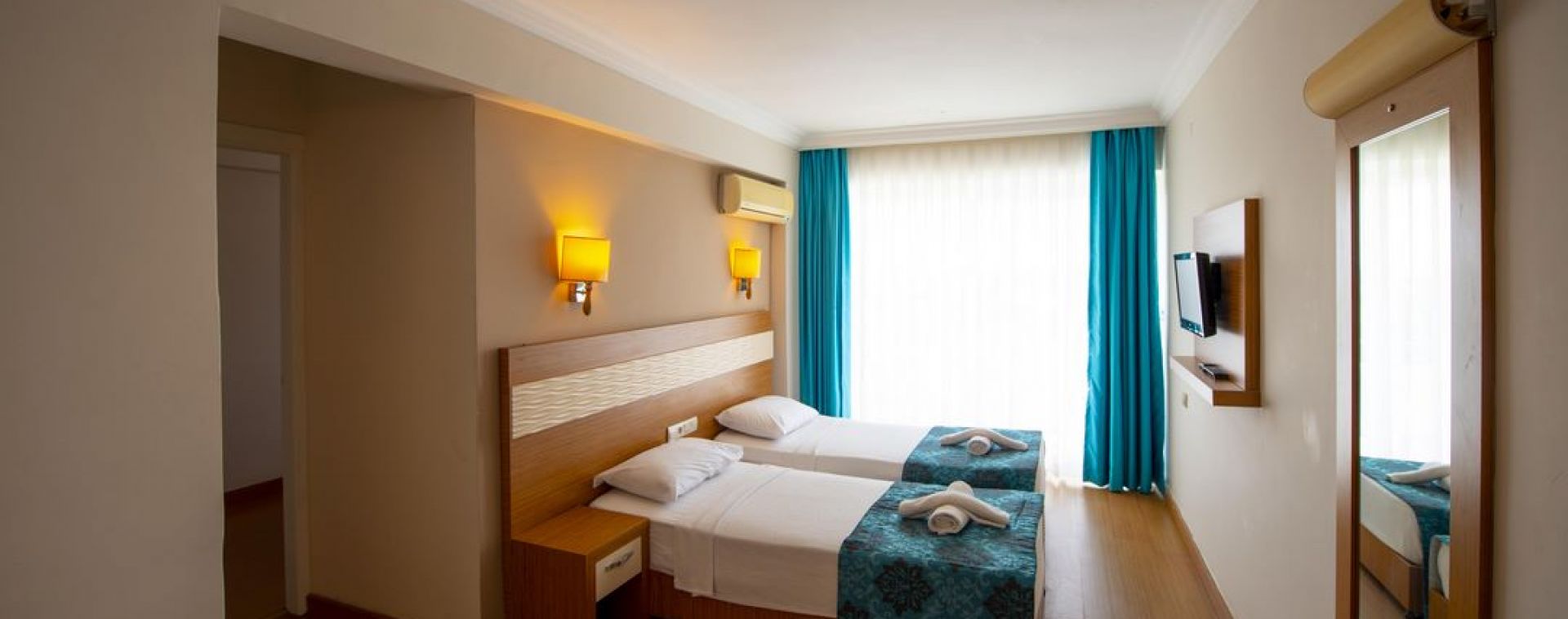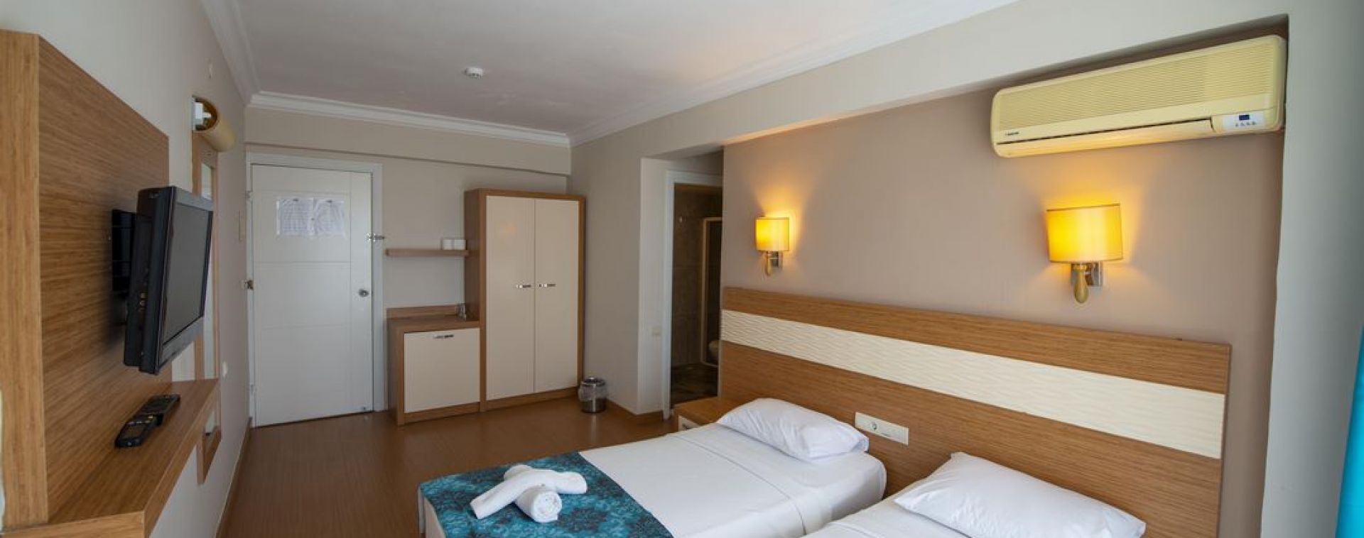 Хотелът разполага с 104 стаи, от които 49 стандартни и 55 фамилни стаи (2 стаи със свързваща врата). Всички стаи са оборудвани с климатик, телевизор, телефон, баня с душ, сешоар, минибар (празен), балкон или тераса. Почистване на стаите – всеки ден, смяна на бельото – 2 пъти в седмицата.
