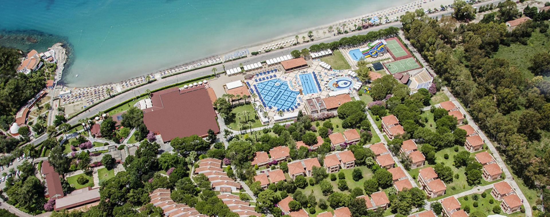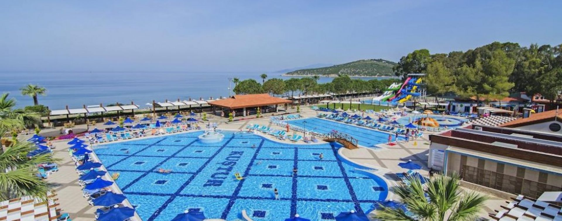 Намира се на 70 км от летище Измир, на 130 км от летище Милас, на 4 км от центъра на Кушадасъ, на 50 м от брега на морето. Построен през 1998 г., поетапно разширяван в периода 2004-2008 г., с обща площ 170 000 м², където тюркоазено синьото на Егейско море се слива с огромна гора от борови дървета с красиви цветя. BUNGALOW GARDEN ROOMS са реновирани през 2014 г., SUPERIOR ROOMS са реновирани през 2021 г. , FAMILY ROOMS през 2022 г.