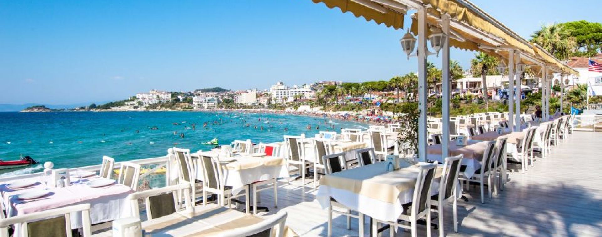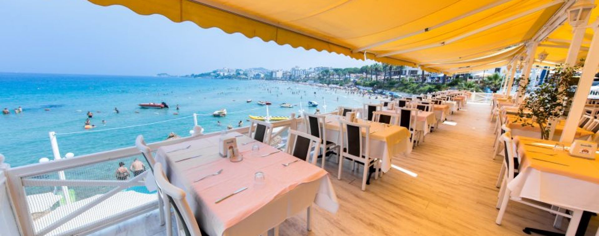 Платформа. Чадъри и шезлонги - безплатно, плажни кърпи - безплатно. На 50 м. от хотела е разположен един от най-известните плажове в Кушадасъ - Ladies Beach.