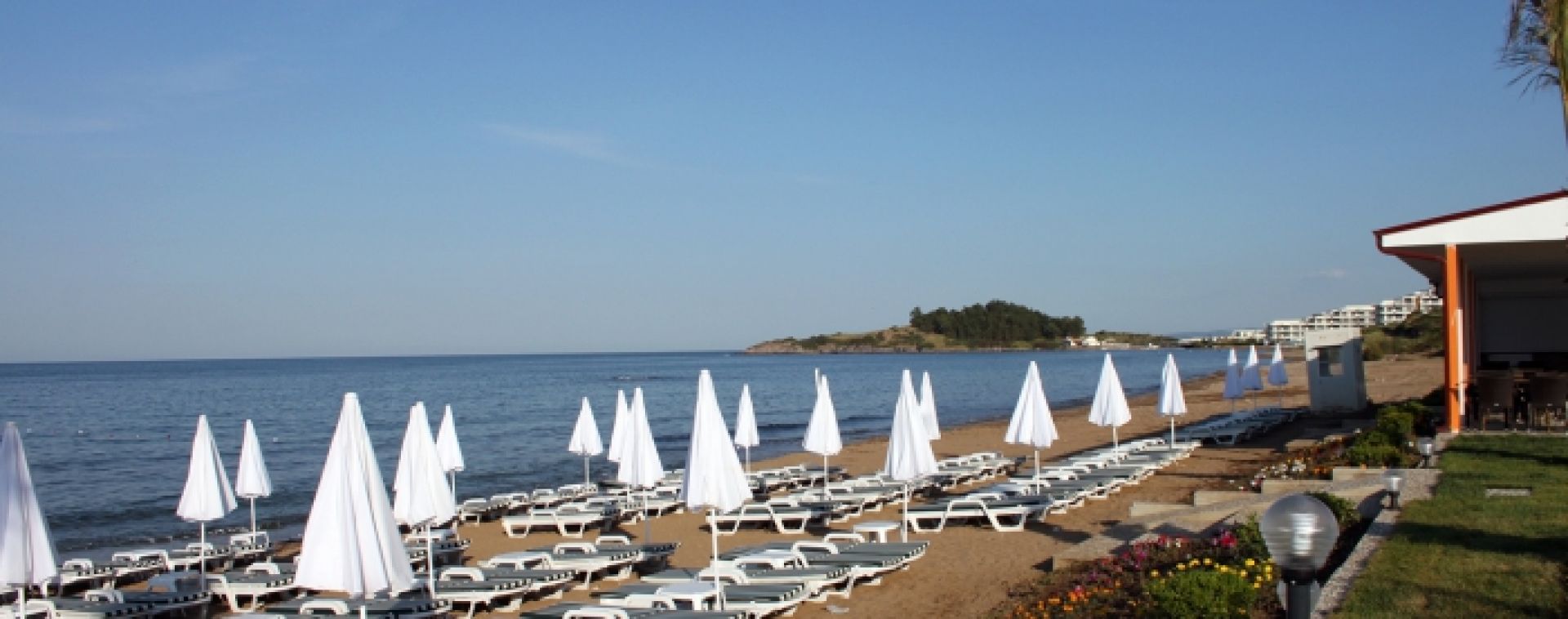 Собствен, пясъчен плаж. Чадъри, шезлонги и матраци при басейна и на плажа - безплатно, плажни кърпи - срещу депозит.