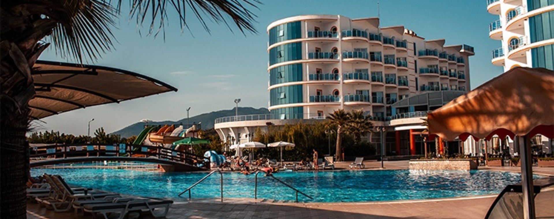 Основен ресторант, снек ресторант, 3 бара, открит басейн, закрит басейн, водни пързалки, магазини, СПА център, ТВ зала, паркинг.