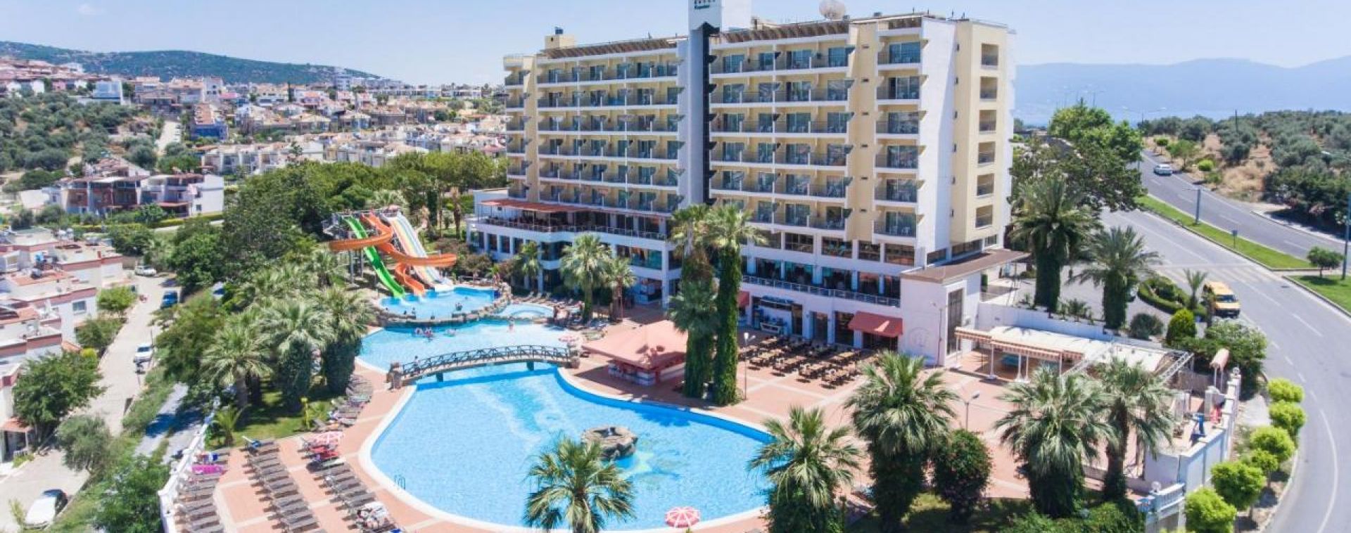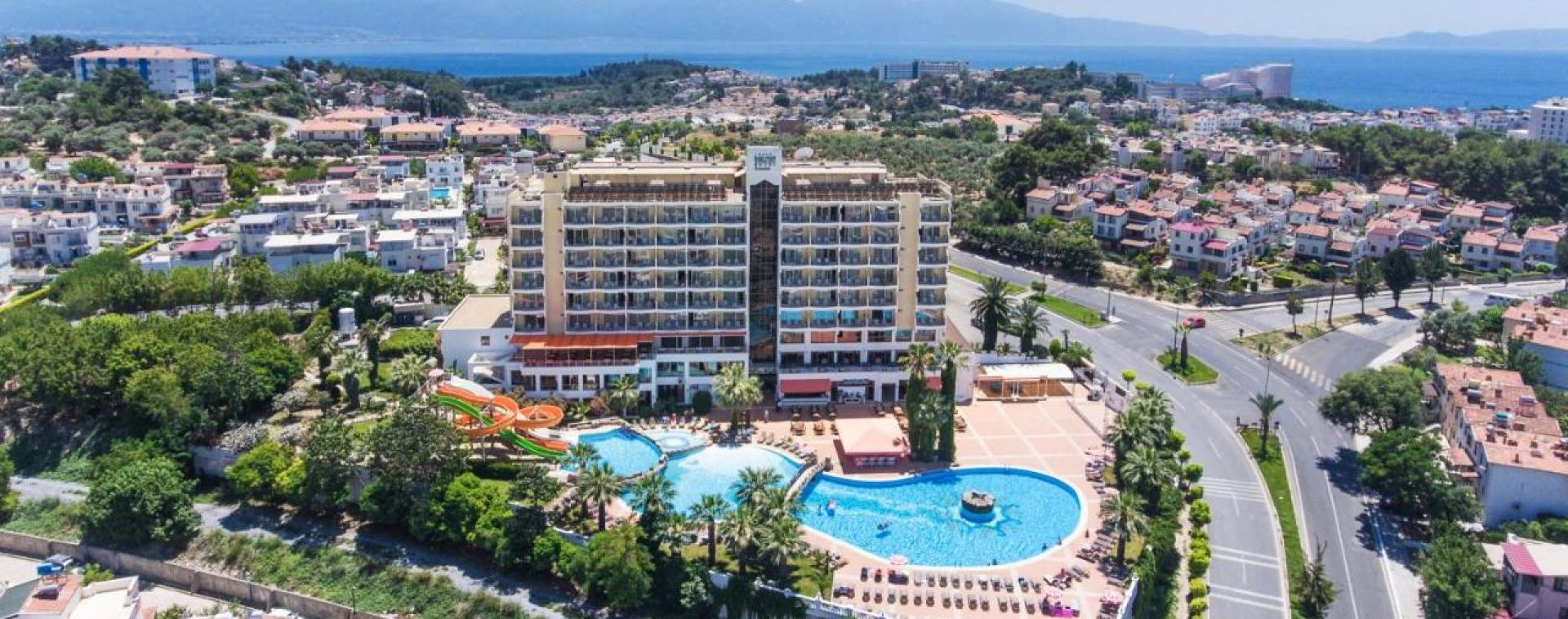 Намира се на 70 км от летище Измир, на 135 км от летище Милас, на 2 км от центъра на Кушадасъ, на 500 м. от брега на морето. Построен през 2002 г. и реновиран през 2017 г.