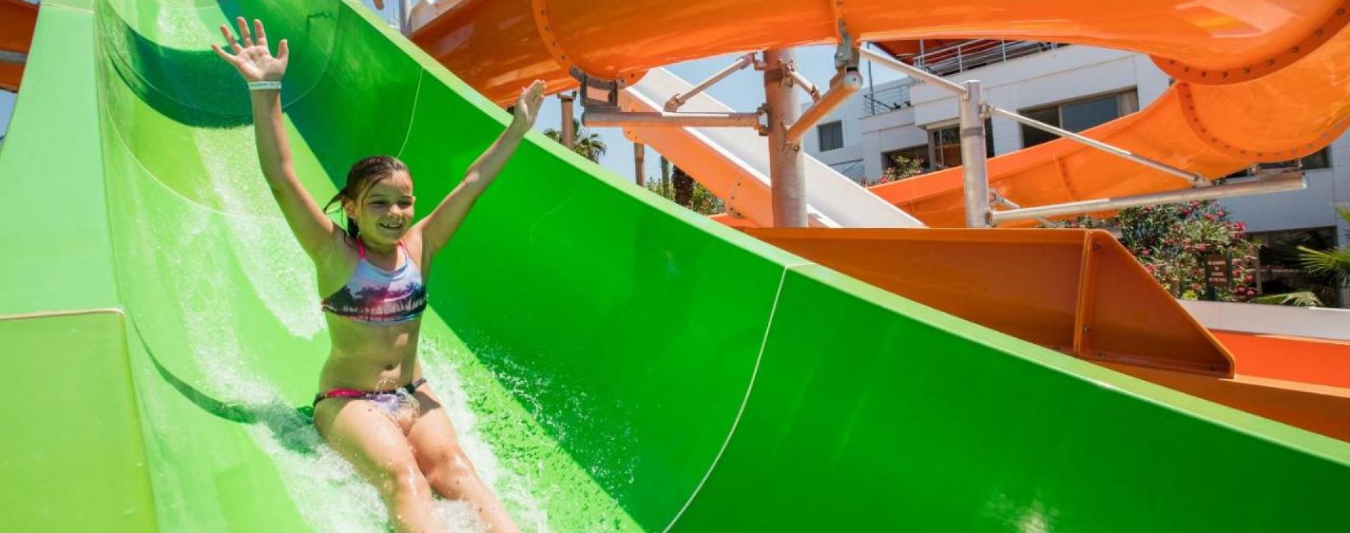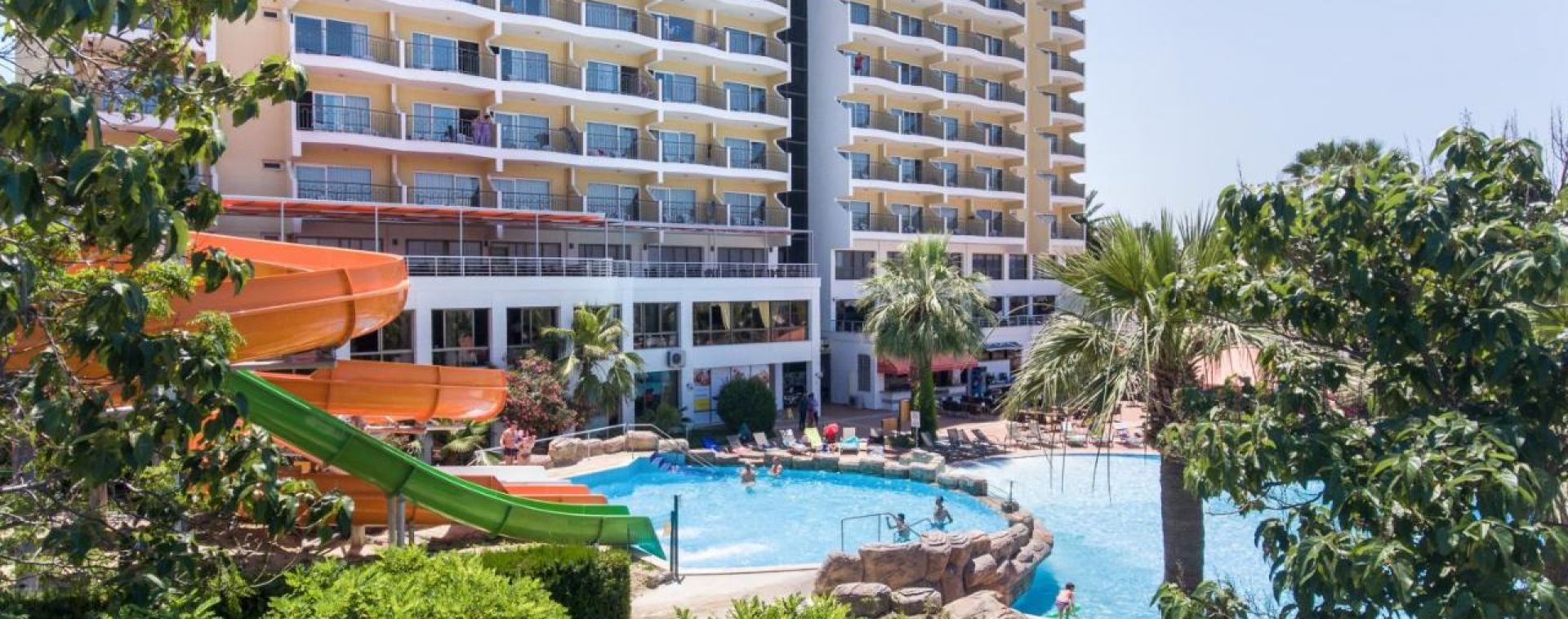 За децата: детски басейн, водни пързалки, детска площадка, мини клуб (4-12 г.).
