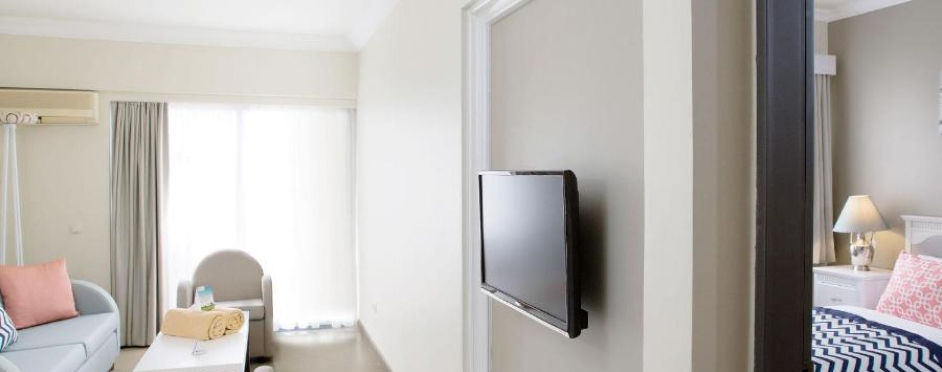 Хотелът разполага с 75 стаи, от които 24 Pool Side Suites (41 м2), 48 Land Side Suites (41 м2), 3 Junior Suites (41 м2). Всички стаи са оборудвани с климатик, телевизор, телефон, баня с душ/вана, сешоар, сет за чай/кафе, минибар (платен), сейф, Wi-Fi интернет. Почистване на стаите – всеки ден, смяна на спалното бельо и кърпите – 2 пъти в седмицата.