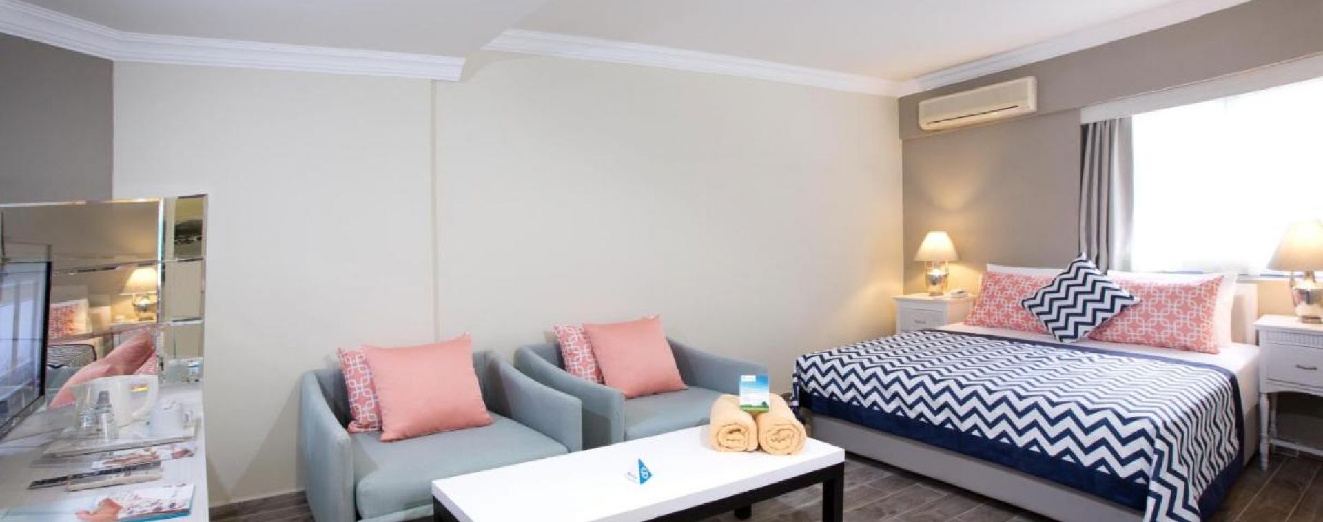 Намира се на 70 км от летище Измир, на 500 метра от центъра на Кушадасъ, в близост до яхтеното пристанище, на 200 метра от плажа. Реновиран през 2014 г. Хотелът е само за възрастни и не се допуска настаняване на деца под 16г.