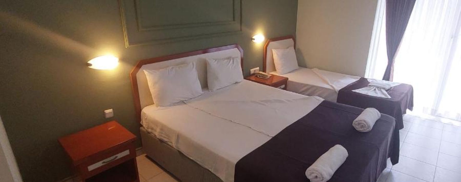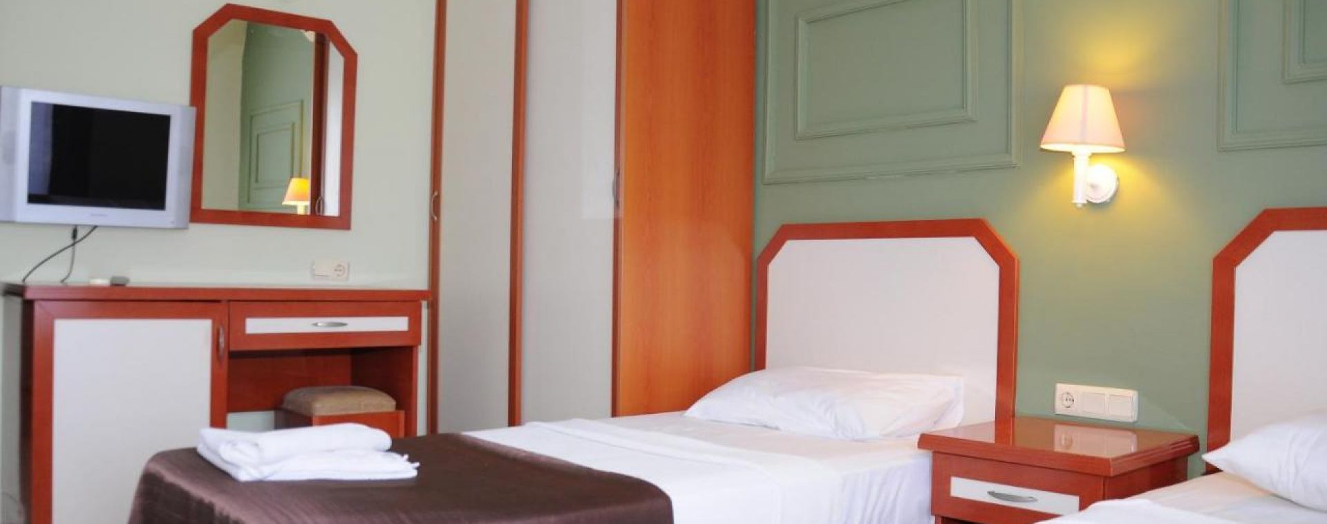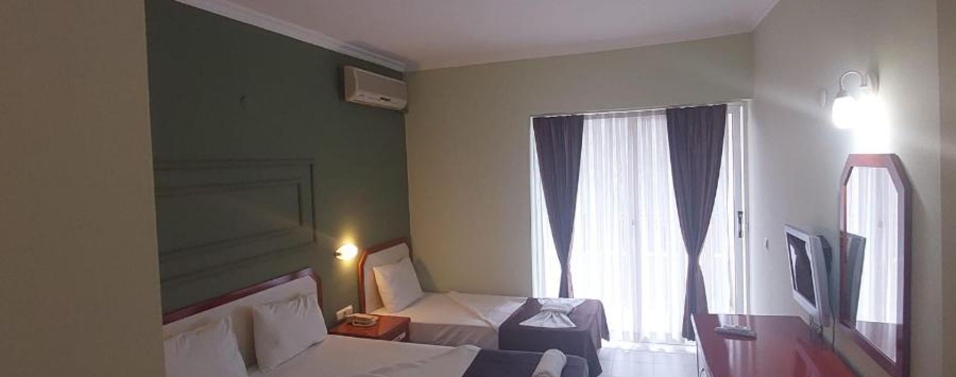 Хотелът разполага с общо 129 стандартни (18 кв.м.) и фамилни стаи (34 кв.м.), всички оборудвани с климатик, телевизор, телефон, баня с душ, сешоар, минибар (платен), сейф, балкон. Почистване на стаите – всеки ден, смяна на бельото и кърпите – 2 пъти в седмицата.